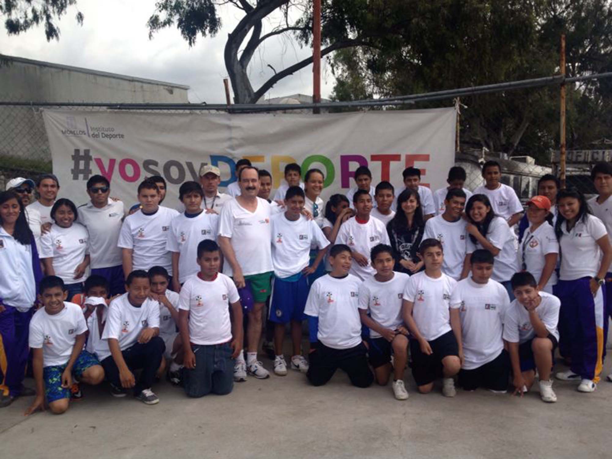 En el deportivo Centenario de Cuernavaca, Jorge Messeguer estuvo con jóvenes de las colonias Jerusalén, Lienzo del Charro, Santa María, Buenavista, La Mojonera y los poblados de Chamilpa y Ocotepec, de Cuernavaca, que participan en el torneo para ganar la construcción de una cancha de fútbol bardeada para su comunidad.