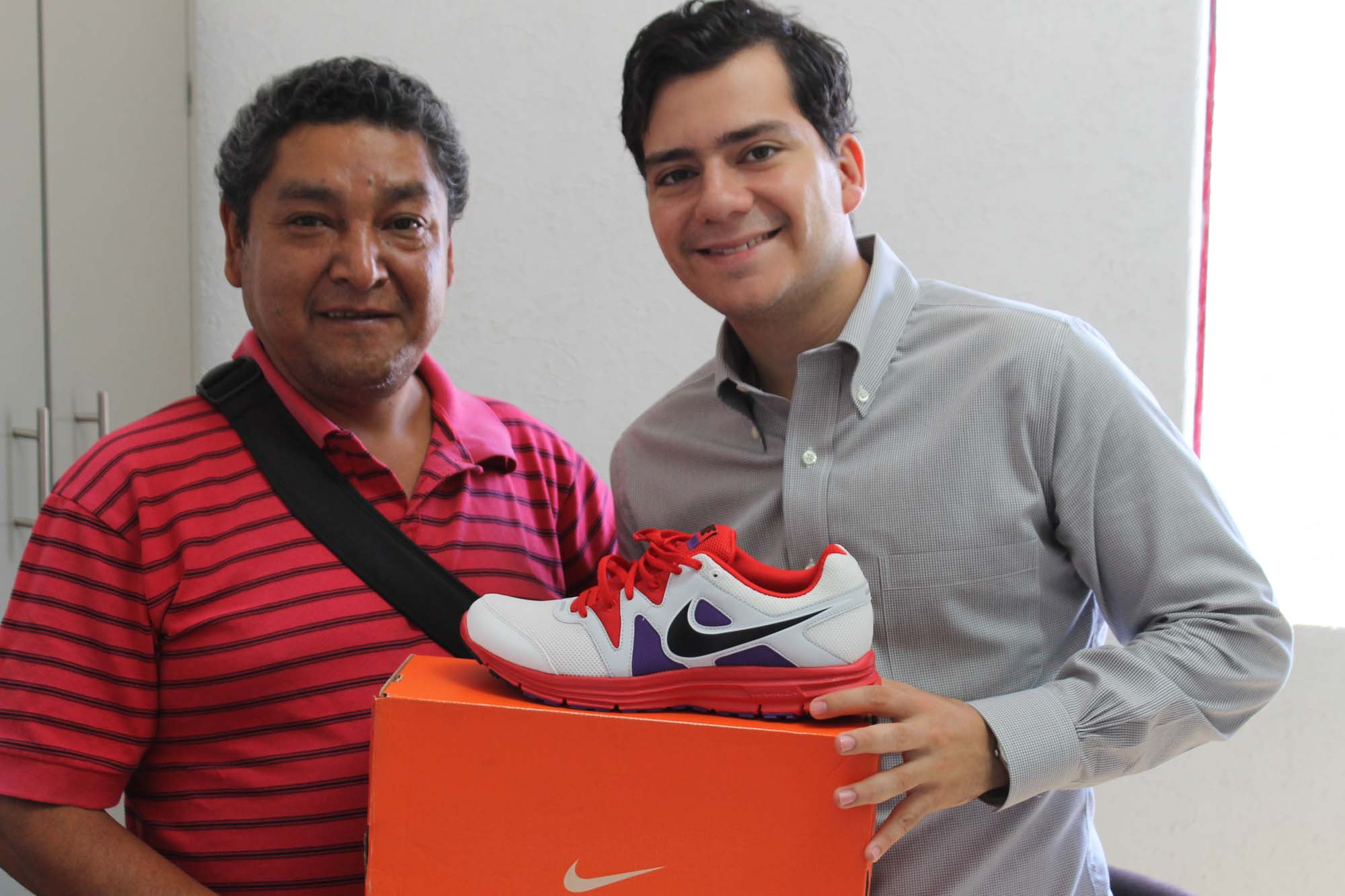 Cuernavaca, Morelos; 18 de junio de 2013. Pablo Gordillo Oliveros, regidor de la Comisión de Atención a la juventud del Ayuntamiento capitalino, apoyo con material deportivo al joven atleta Elmer Fernando Arenas Arteaga, para sus prácticas en la pista de atletismo.