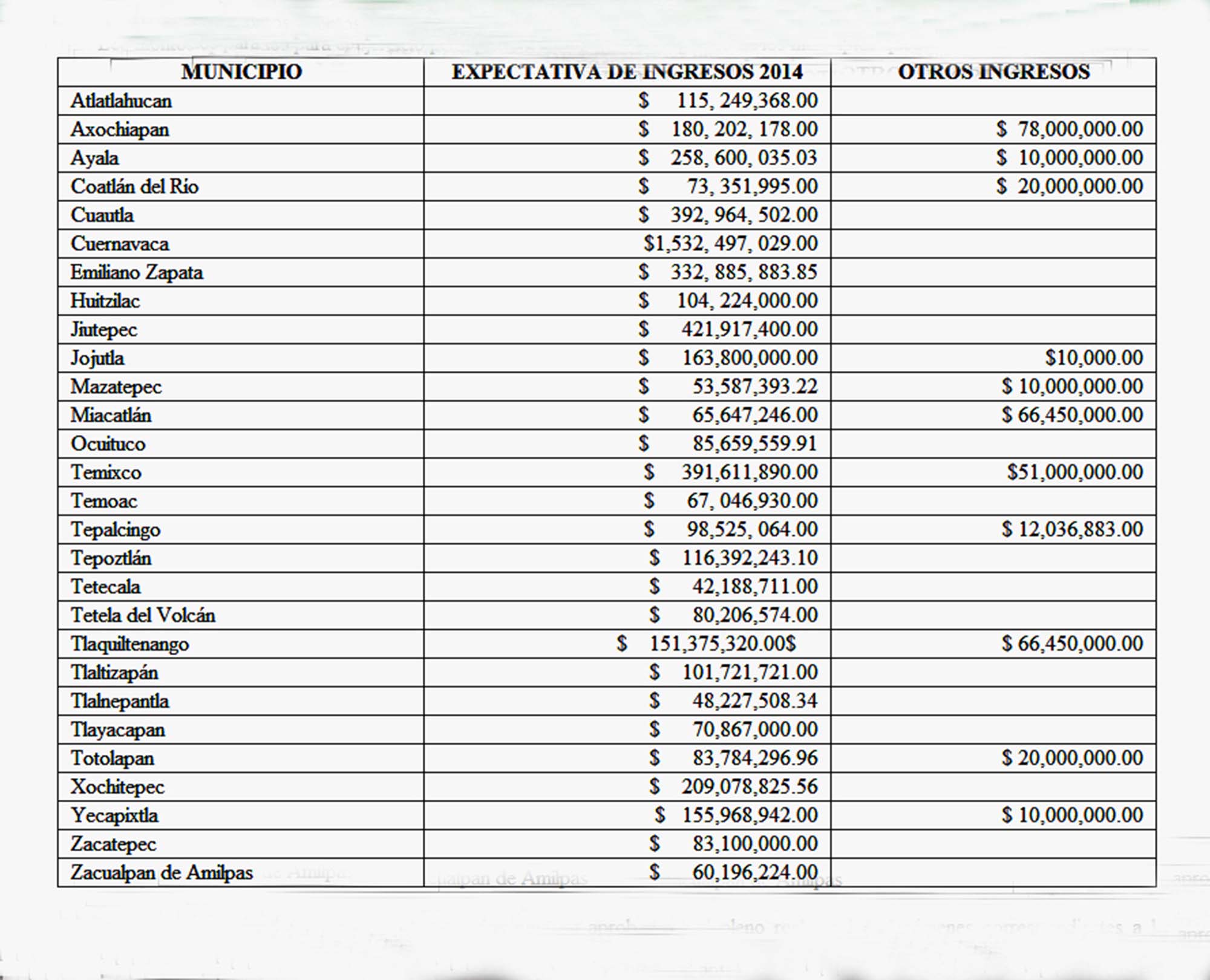 Sólo los ingresos para las administraciones de Atlatahucan, Huitzilac, Ayala, Jiutepec, Temoac, Tepoztlán, Tetecala, Taltizapán, Tetela del Volcán, Tlayacapan, Tlalnepantla y Xochitepec, alcanzaron la aprobación unánime del pleno legislativo.