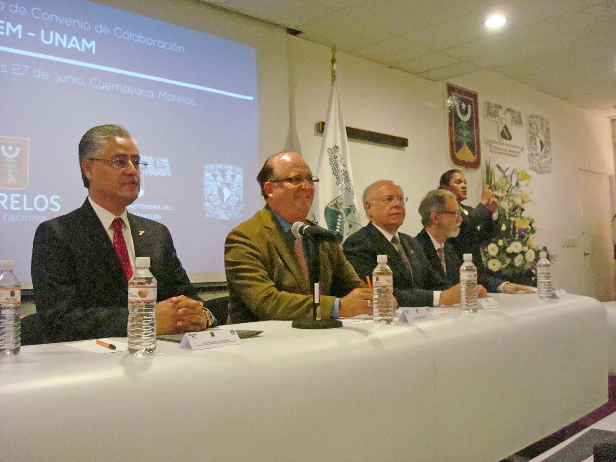 Cuernavaca, Morelos; a 27 de junio de 2013. El gobernador Graco Ramírez Garrido Abreu, atestiguó la firma de convenio entre los rectores de la Universidad Nacional Autónoma de México (UNAM) y de la Universidad Autónoma del Estado de Morelos (UAEM), José Narro Robles y Jesús Alejandro Vera Jiménez, respectivamente.