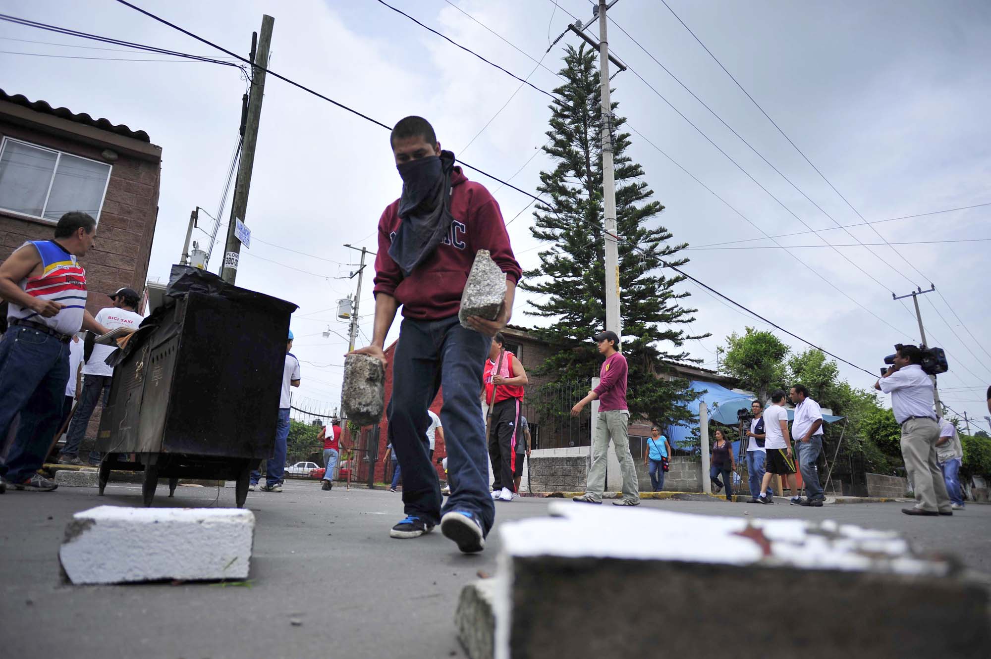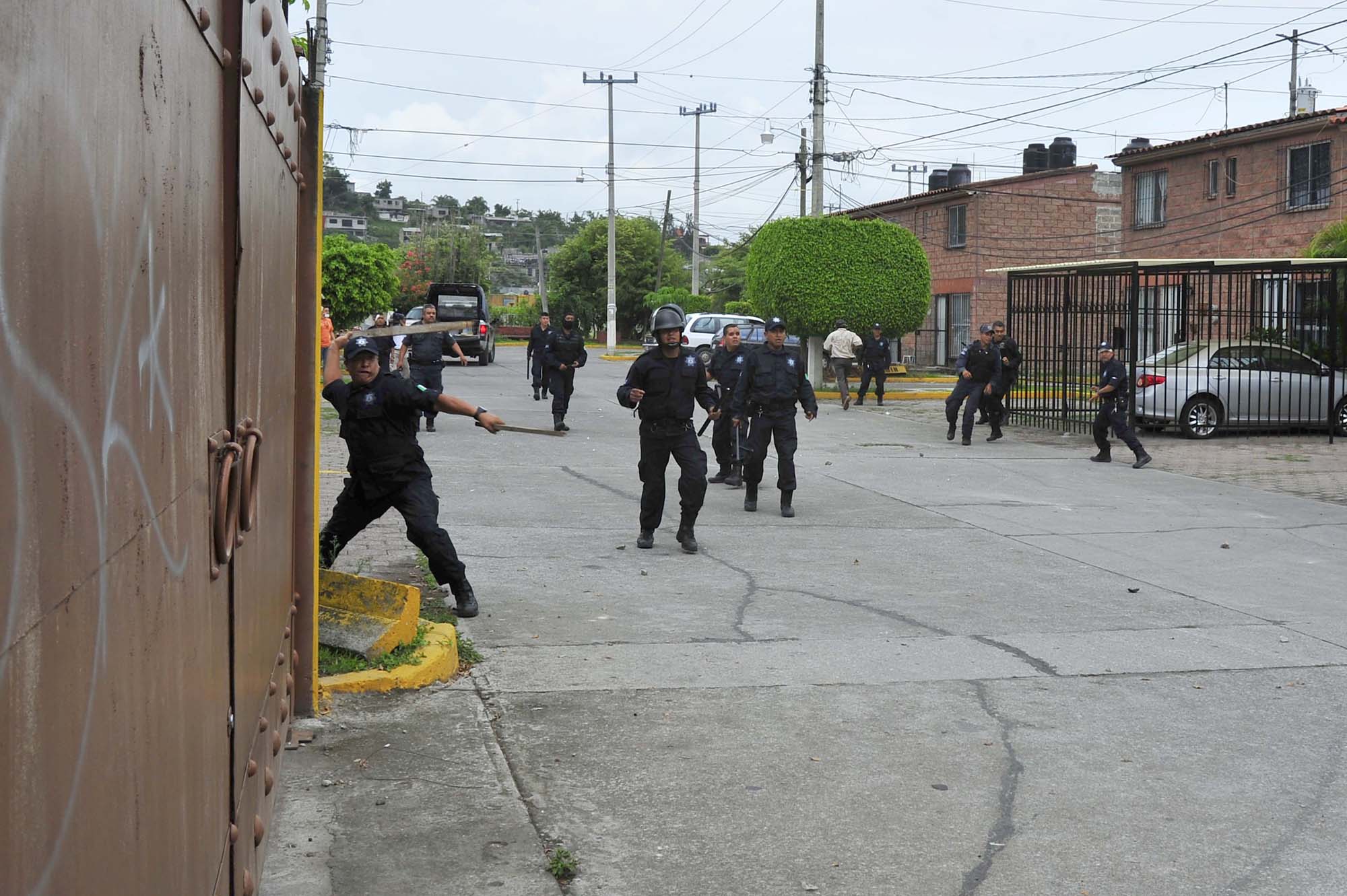 Tepoztlán, Morelos; 20 de junio de 2013. Vecinos de la Unidad Habitacional Acolapa, defendieron con palos y piedras a una muer de la tercera edad que iba a ser desalojada de su vivienda por una actuaria con la ayuda de policías municipales de Tepoztlán y Jiutepec.