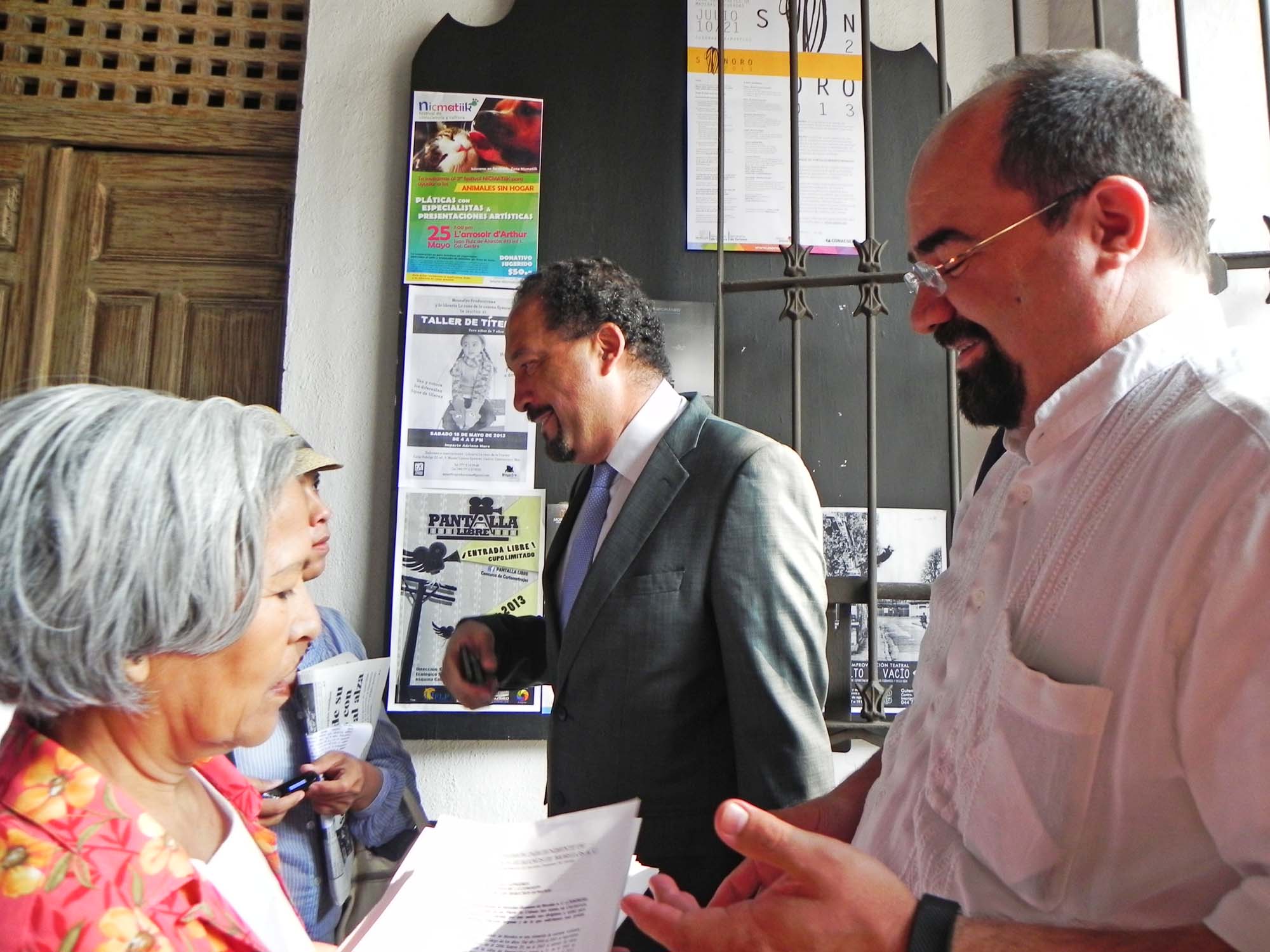 José Martínez Cruz entregó a cada uno de los asistentes a la mesa la carta dirigida a Emilio Álvarez Icaza y al comisionado de la ONU, pero no pudo entregársela al secretario de gobierno Jorge Messeguer Guillén, quien no se detuvo ni un segundo. Señaló que es preocupante que el nivel de violencia no decrece en el estado, al contrario, aumenta y lejos de que se tomen medidas adecuadas, se dan pretextos, argucias y se padece violencia institucional en la medida en que las autoridades no aplican los mecanismos para proteger a las mujeres y no se emite la alerta de género.