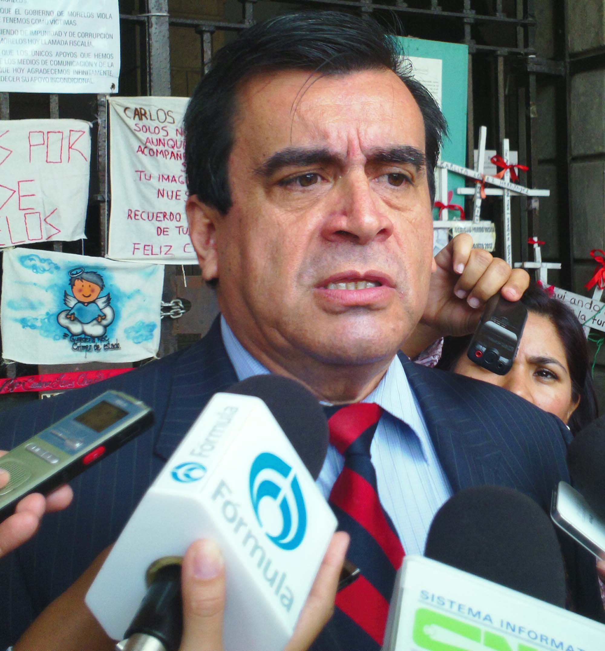 Cuernavaca, Morelos; 31 de octubre de 2013. A las afueras de la Casa Morelos el presidente del Consejo Jurista del Estado, Gerardo Arrieta Fuentes, denunció que como consecuencia de las amenazas y actos intimidatorios de la Procuraduría General de Justicia de Morelos, Miguel Ángel Rosete Flores litigante y representante legal de las familias de las víctimas desaparecidas y o asesinadas decidió emigrar de la entidad junto con su familia.