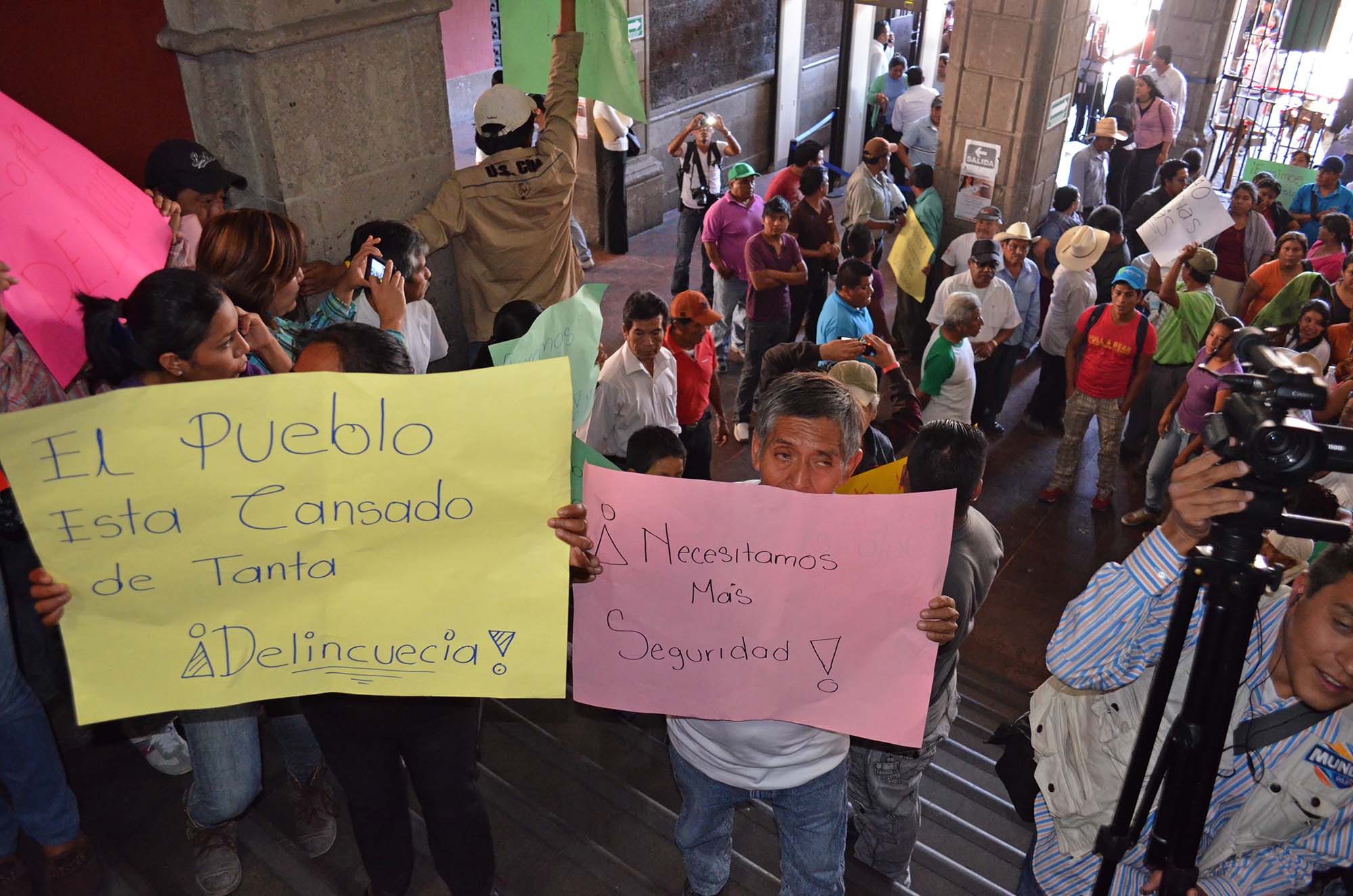 Cuernavaca, Morelos; 13 de diciembre de 2013. Cerca de 200 habitantes de la comunidad de Xoxocotla de Puente de Ixtla se manifestaron frente al Palacio de Gobierno para exigir seguridad en ese poblado ya que ésta ha ido en aumento y no tienen más que 39 policías.
