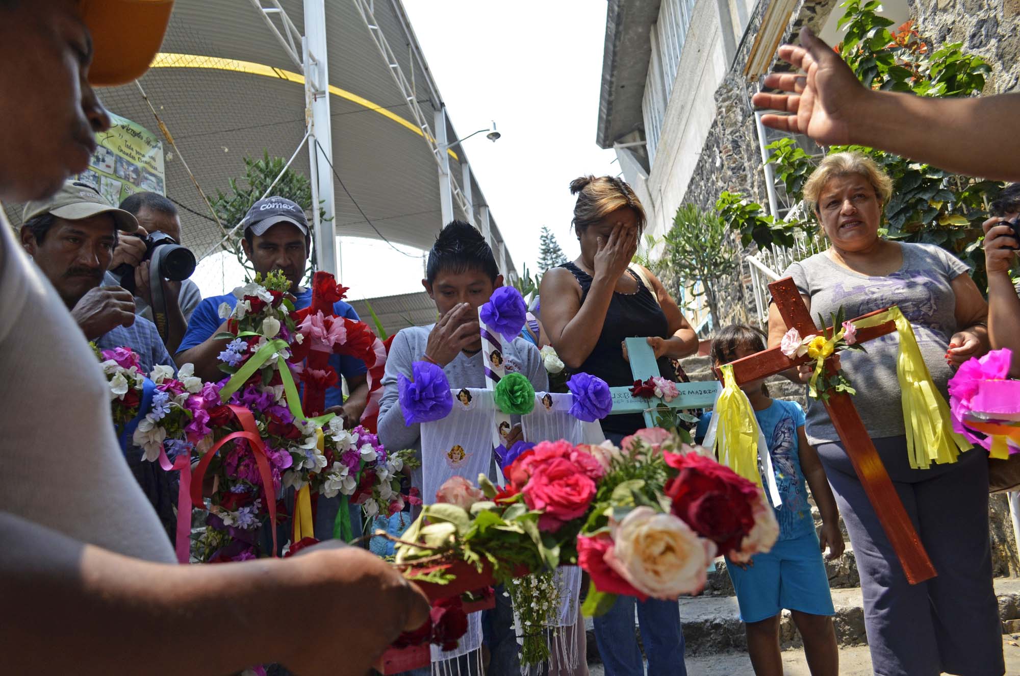 En el municipio de Emiliano Zapata, en la parroquia de la Santa Cruz el padre Juan Carlos Sánchez dio la bendición a cruces adornadas con flores que los obreros de las alturas y sus familias llevaron a bendecir.