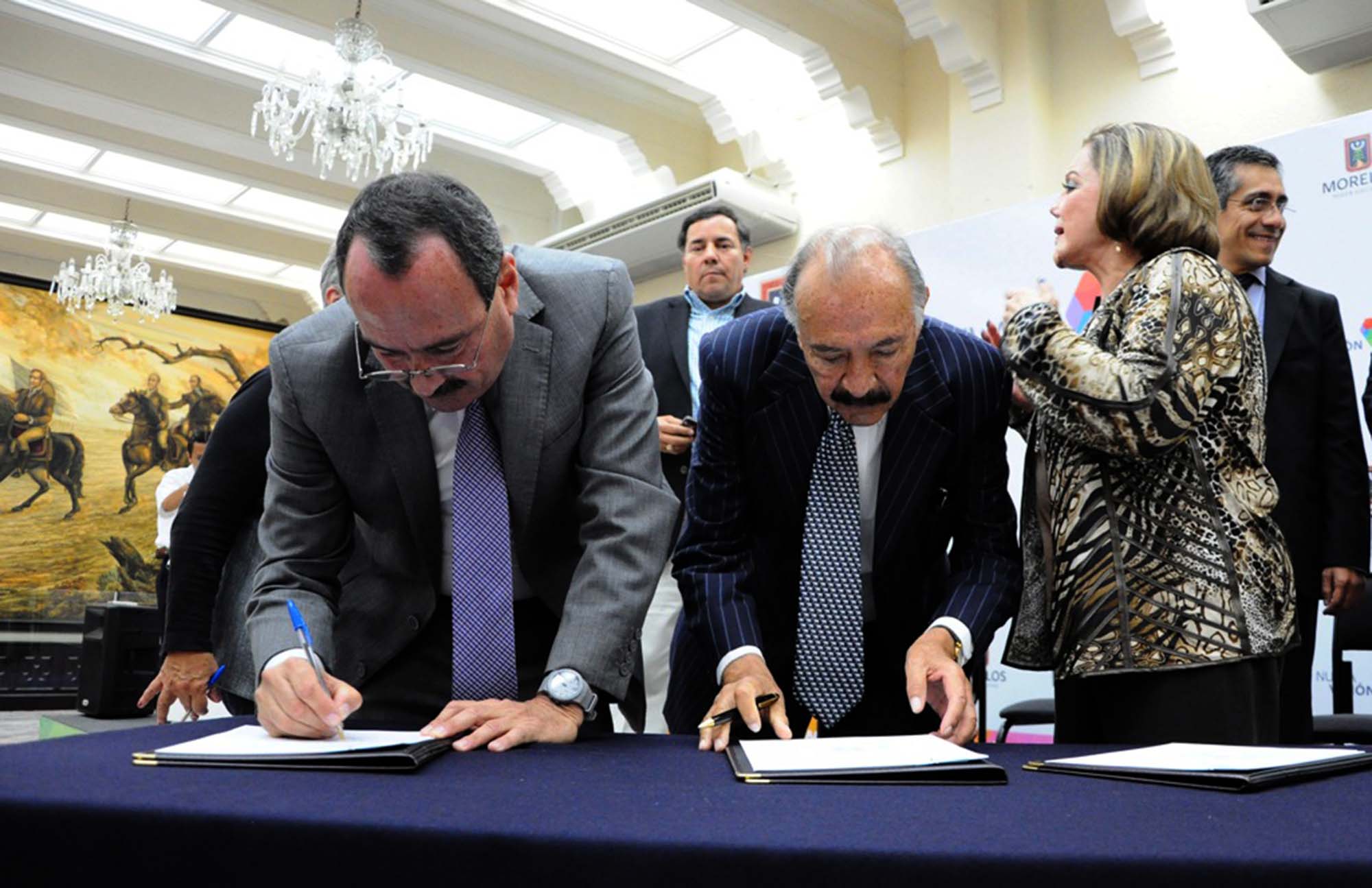 Cuernavaca, Morelos; 4 de septiembre de 2013. El secretario de Gobierno, Jorge Messeguer Guillén con el Colegio de Notarios del Estado de Morelos, que preside Patricia Mariscal Vega, firmó el convenio con el que se pone en marcha la campaña “Septiembre y Octubre meses del Testamento”, acción con la que se invita a la población concretar los trámites documentales para dar certidumbre jurídica a su patrimonio.