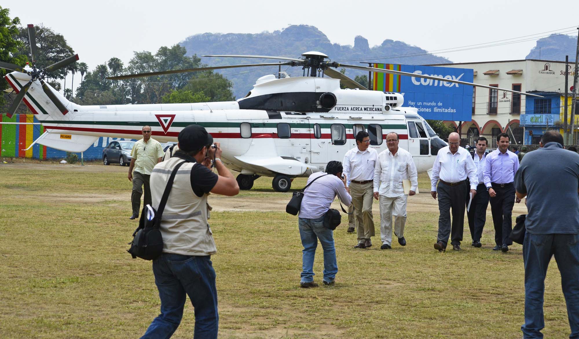 Tepoztlán, Morelos; 17 de abril de 2013. El gobernador Graco Ramírez y el titular de la Secretaría de Medio Ambiente y Recursos Naturales (Semarnat), Juan José Guerra Abud, realizaron un sobrevuelo para evaluar la magnitud de los daños ocasionados por los incendios forestales que están afectando la zona norte y oriente de Morelos, tras lo cual determinaron el apoyo del Gobierno Federal para fortalecer al equipo de brigadistas y la logística correspondiente para hacer frente a esta situación.