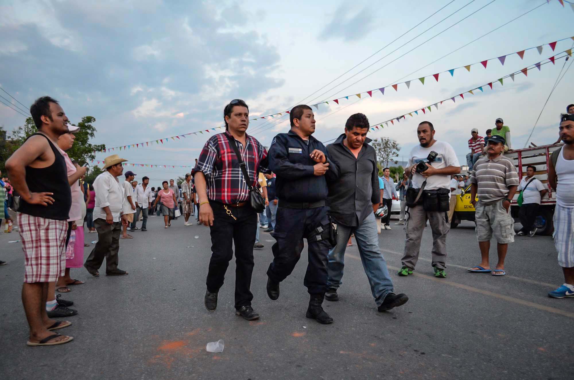 De acuerdo con vecinos del lugar el problema se suscitó cuando pasadas las 3 de la tarde los federales apoyados por militares irrumpieron en domicilios de los habitantes y con lujod e violencia sacaron a jóvenes y se los llevaron a golpes; asimismo, por la calle, detuvieron a varios motociclistas y conductores de motoraxis.