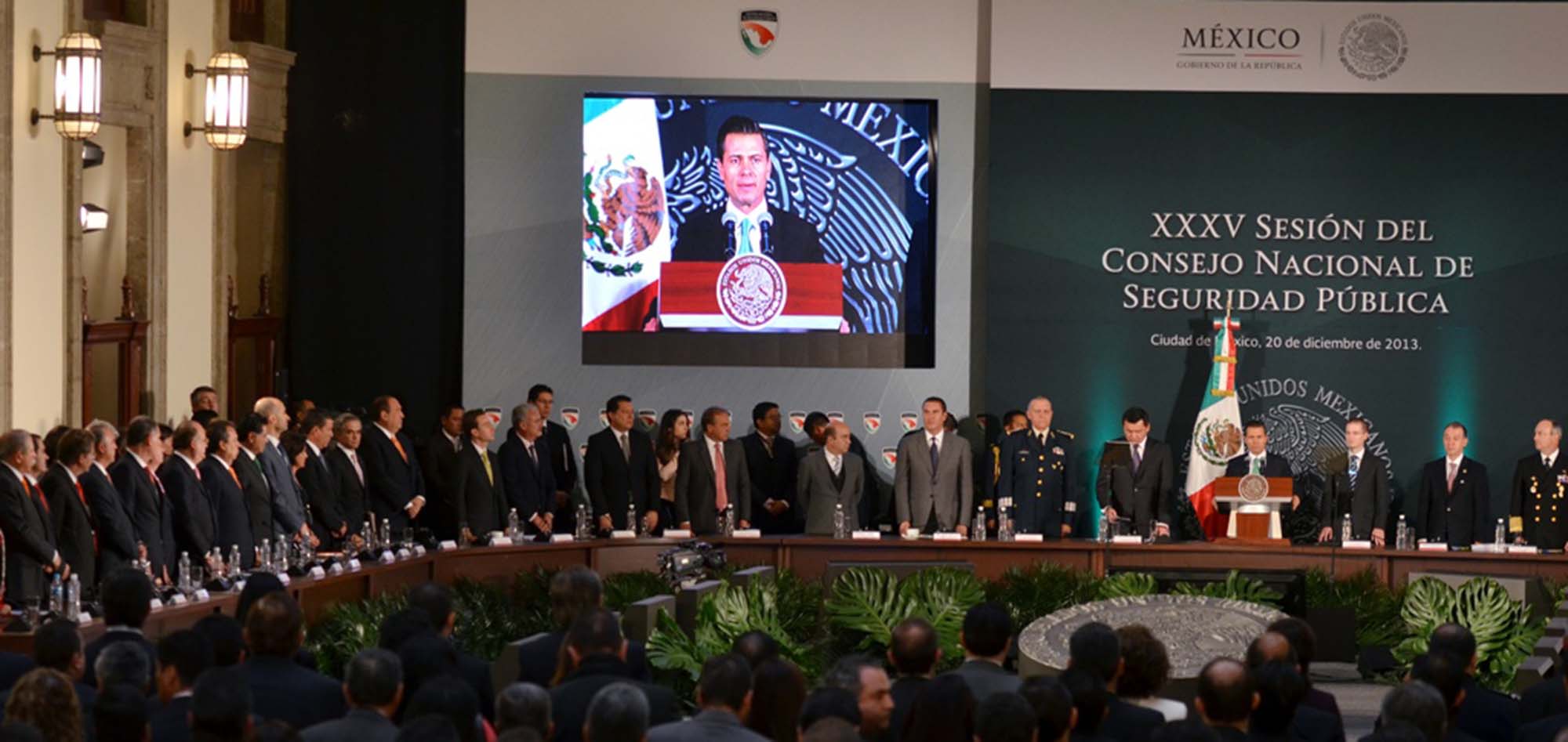 En este sentido, el Presidente de la República, Enrique Peña Nieto, convocó a seguir sumando esfuerzos para lograr un México en paz que exige la ciudadanía, donde dejó en claro que para este tema no debe haber colores partidistas, sino formar un mismo frente, detallando algunas de las decisiones que se han tomado en política de seguridad y procuración de justicia, donde dijo, se han fortalecido los cuerpos de seguridad, la transformación del sistema penitenciario, promoción y articulación de la participación ciudadana, la coordinación, regionalización, fortalecimiento de la inteligencia, entre otros.