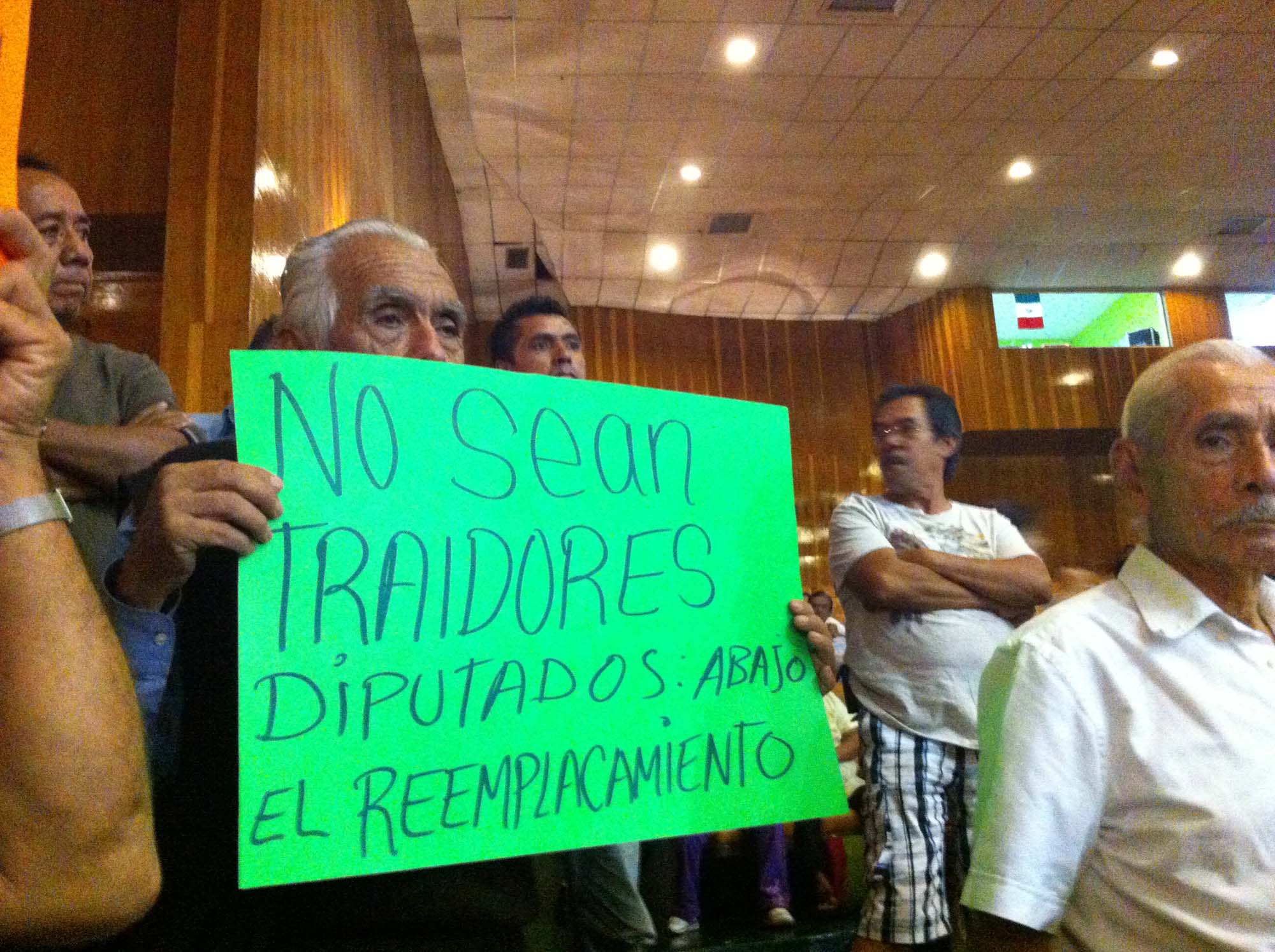 «Venimos a exigir a los diputados que tomen el punto de acuerdo que emitió el Congreso de la Unión para dar marcha atrás al reemplacamiento, queremos que se pronuncien en torno , porque hasta el momento ni siquiera lo han pasado como correspondencia recibida; han sido indolentes», declaró Gabriel Rivas Ríos, líder del Comité de Colonias en lucha.