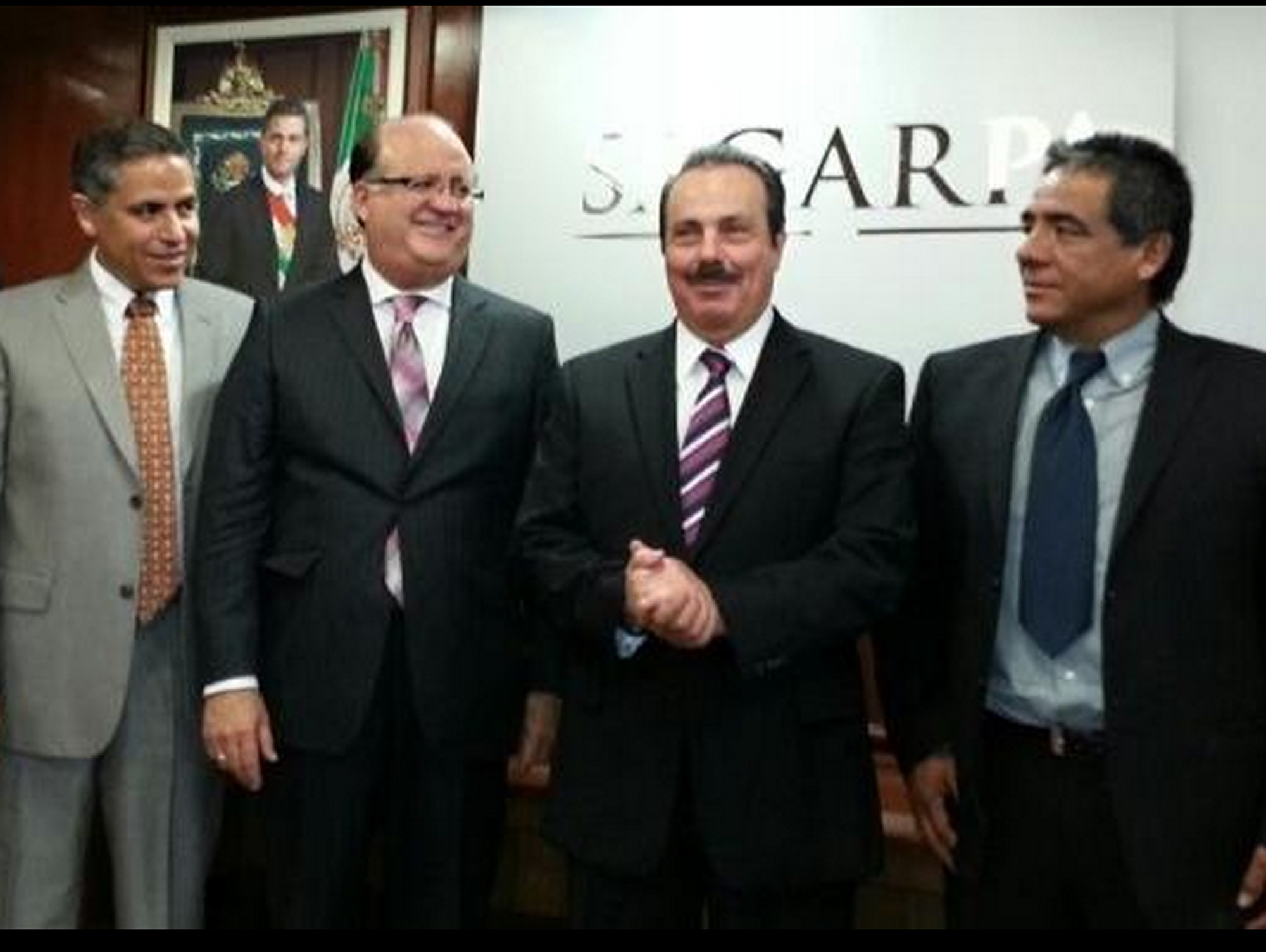 México, Distrito Federal; 24 de abril de 2013. El gobernador Graco Ramírez y el titular de la Secretaría de Agricultura, Ganadería, Desarrollo Rural, Pesca y Alimentación (SAGARPA), Enrique Martínez Martínez, tras sostener una reunión de trabajo en la Ciudad de México donde la desincorporación de los Ingenios Azucareros en el Estado de Morelos, el desarrollo de Proyectos estratégicos para fortalecer el Sector Agropecuario y la instalación de un Parque Tecnológico Agropecuario, fueron los tres temas que acordaron trabajar en coordinación.