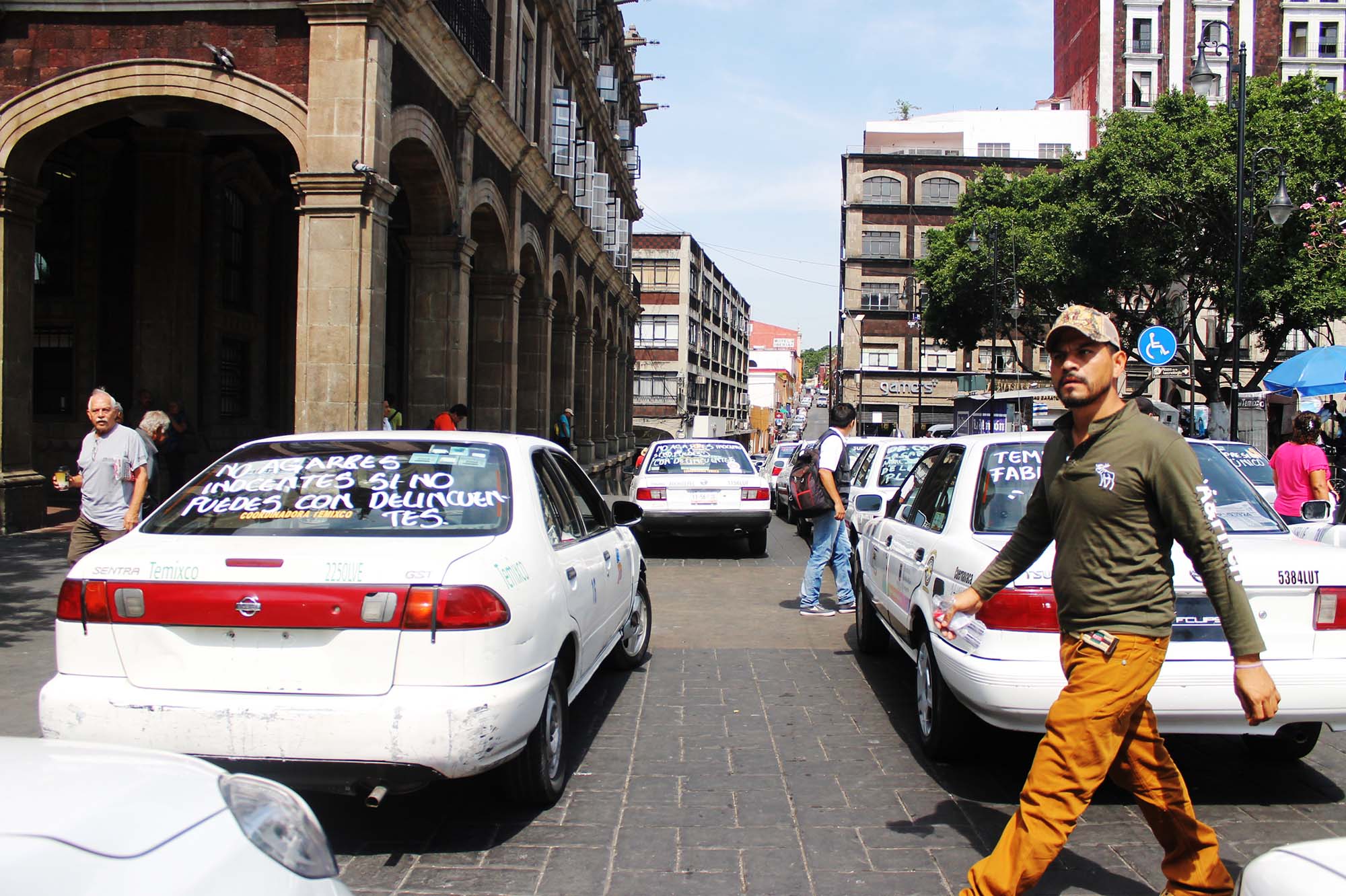 Alrededor de 200 taxistas de diversas colonias de Temixco, con la leyenda en sus unidades de “no agarres inocentes sino puedes con delincuentes”, “alto al abuso del Mando Único”, arribaron al zócalo de Cuernavaca para denunciar que la policía de Mando Único está poniendo droga a las personas que no les dan dinero y los llevan a la Fiscalía y después aparecen en las estadísticas del Gobierno de que agarraron a peligrosas bandas de delincuentes.