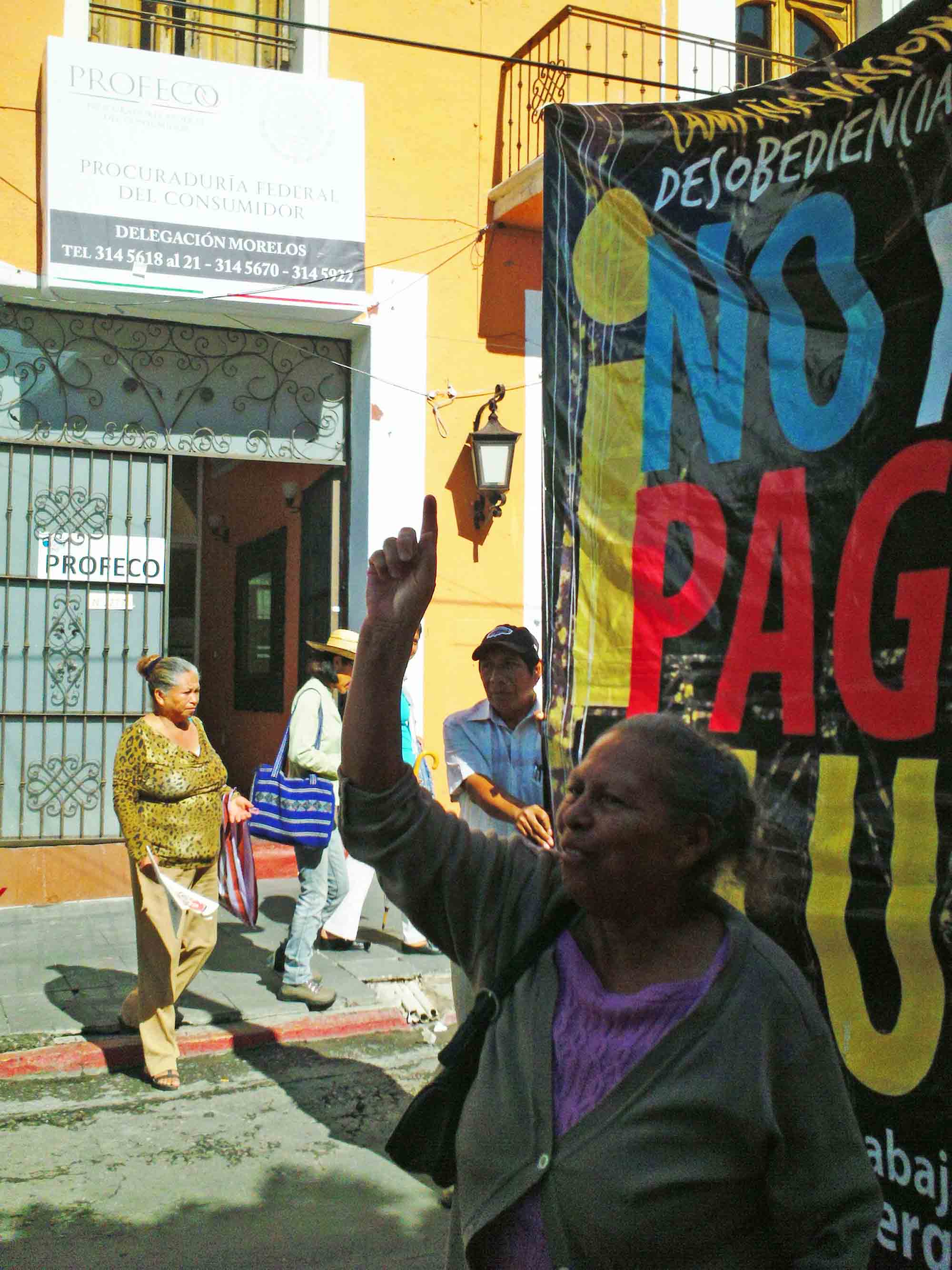 Cuernavaca, Morelos; 11 de junio de 2014. Un centenar de personas se movilizaron a las afueras de la Procuraduría Federal del Consumidor realizando bloqueos intermitentes en avenida Morelos. Los inconformes externaron su molestia por las tarifas excesivas que cobra la Comisión Federal de Electricidad (CFE).