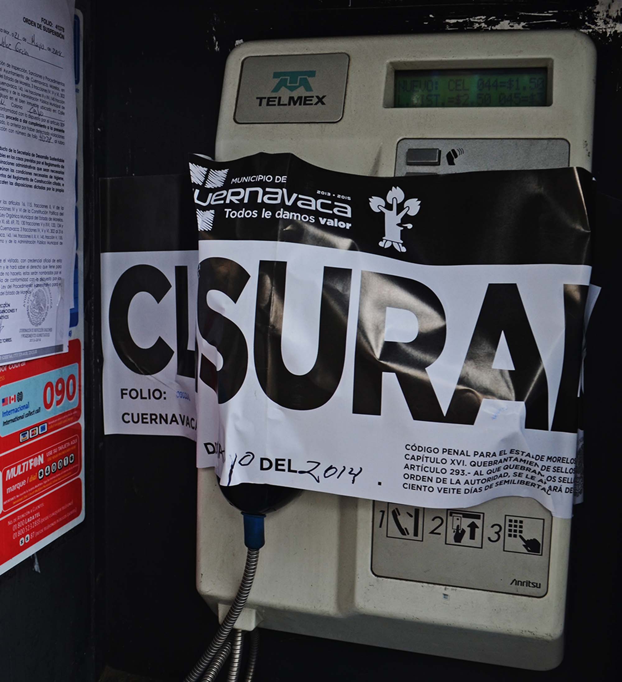Cuernavaca, Morelos; 21 de mayo de 2014. El personal de Gobernación, Licencias de Funcionamiento, Desarrollo Sustentable y Desarrollo Económico del Ayuntamiento de Cuernavaca inició un procedimiento de regularización de las casetas telefónicas que hay en el primer cuadro de la capital.