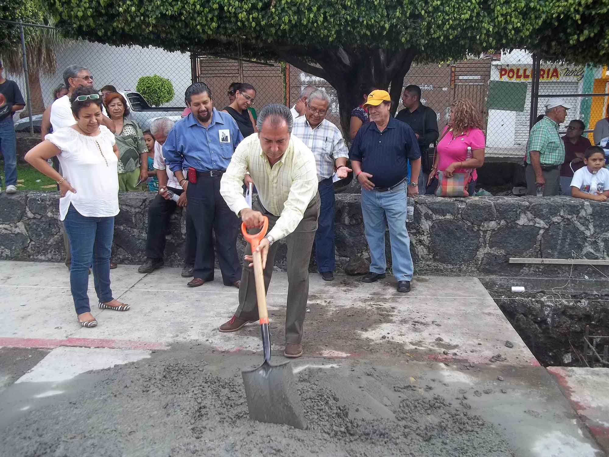 Cuernavaca, Morelos; 10 de agosto de 2014. El diputado Carlos de la Rosa Segura puso en marcha los trabajos de construcción de la Techumbre de la cancha deportiva de la colonia Tulipanes de Cuernavaca.