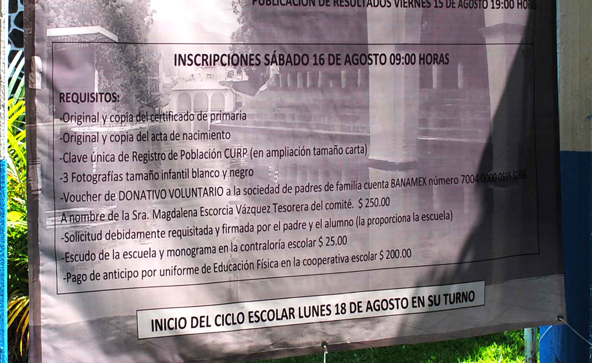 La administración estatal Informó que se registraron 24 quejas en la Dirección Jurídica del Instituto –la mayoría a través de la línea “EDUCATEL”– en contra de directores que piden cuotas escolares para realizar el proceso de inscripción o bien como condicionantes para la entrega de documentos.