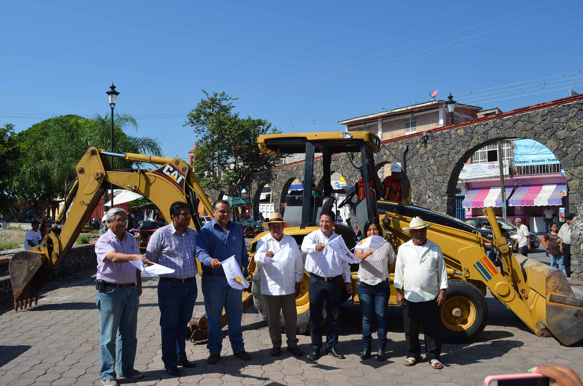 Yautepec, Morelos; 14 de octubre de 2014. Con una inversión de más de $6,800,000.00 pesos, se dio el banderazo de inicio de obra por parte del Presidente Municipal, Agustín Alonso Mendoza, en compañía del Senador Rabindranath Salazar Solorio, y parte del cabildo, para que se inicien con los trabajos de la Remodelación de la Plaza del Arte “Jorge Cázares Campos”, ubicada en los arcos a unos metros de la Parroquía de la Asunción de María, y la construcción del puente peatonal de la Avenida Solidaridad en la Colonia Emiliano Zapata.