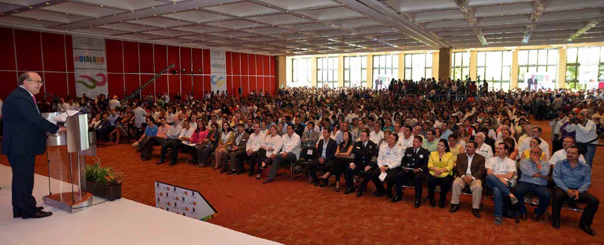 Ante más de tres mil participantes del Diálogo por Morelos Graco Ramírez señaló: “están ustedes aquí por su propia voluntad, para ejercer el derecho de la gente a recordarle su obligación de quien asume el gobierno a que cumpla; y aquí estamos ante ustedes de frente y dando la cara para tener los oídos atentos y la mirada de frente”.