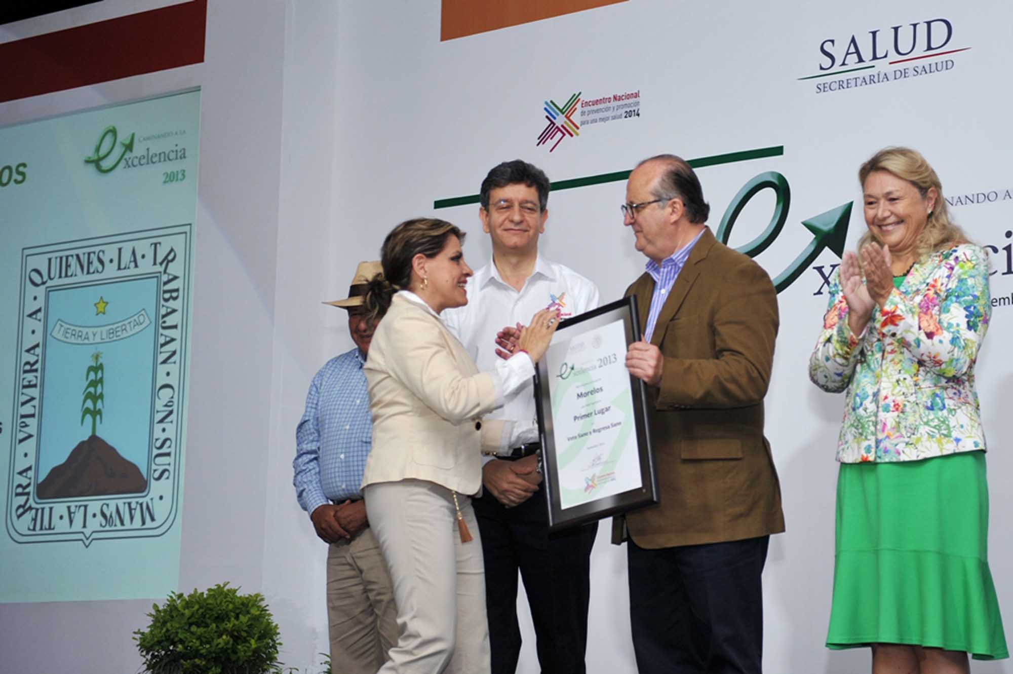 En esta edición del encuentro nacional de Prevención y Promoción para una Mejor Salud 2014, el estado de Morelos obtuvo un reconocimiento por el primer lugar en el programa “Vete y Regresa Sano”, así como el segundo lugar en el programa de “Comunidades Saludables”.