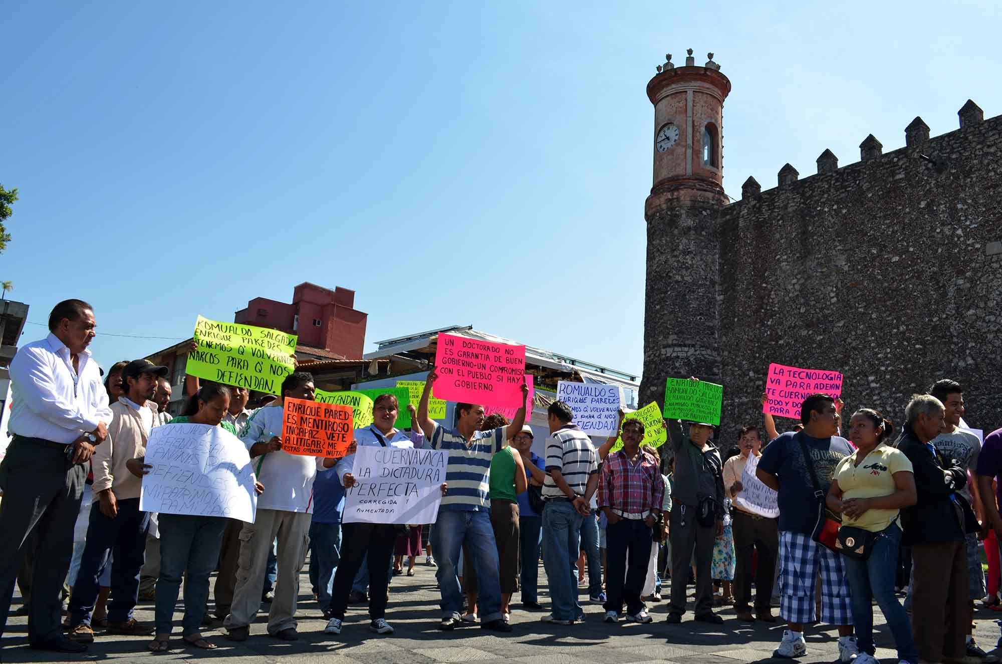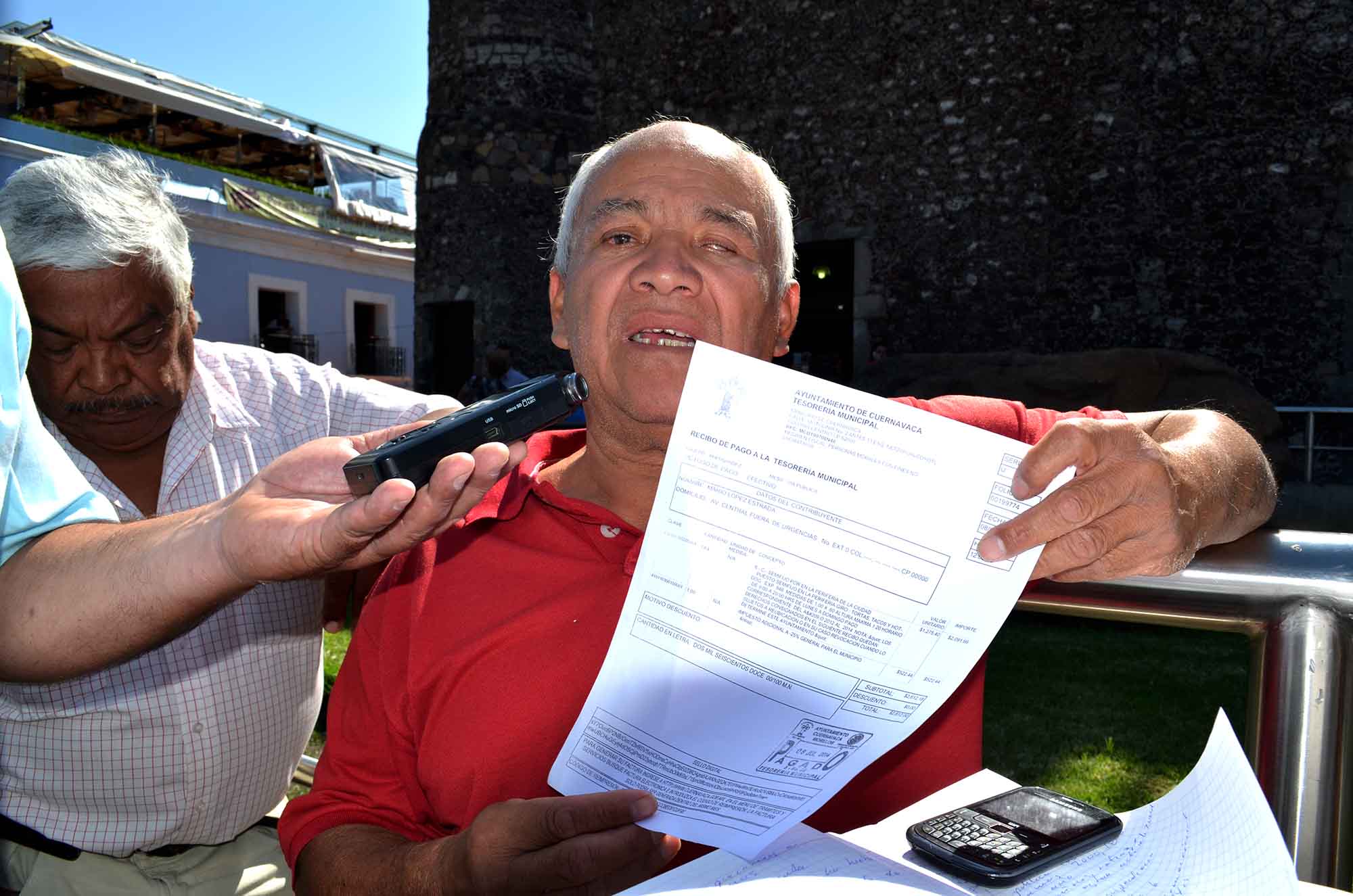 Cuernavaca, Morelos; 22 de julio de 2014. Mario Lara López, presidente de la Coalición de Líderes de Comerciantes del Estado de Morelos, dio a conocer que marcharían al Ayuntamiento para exigir seguridad jurídica, ya que les están dado un recibo condicionado pues en el mismo documento les dicen que ese permiso estará sujeto a revocación cuando la autoridad –Ayuntamiento- lo considere conveniente.