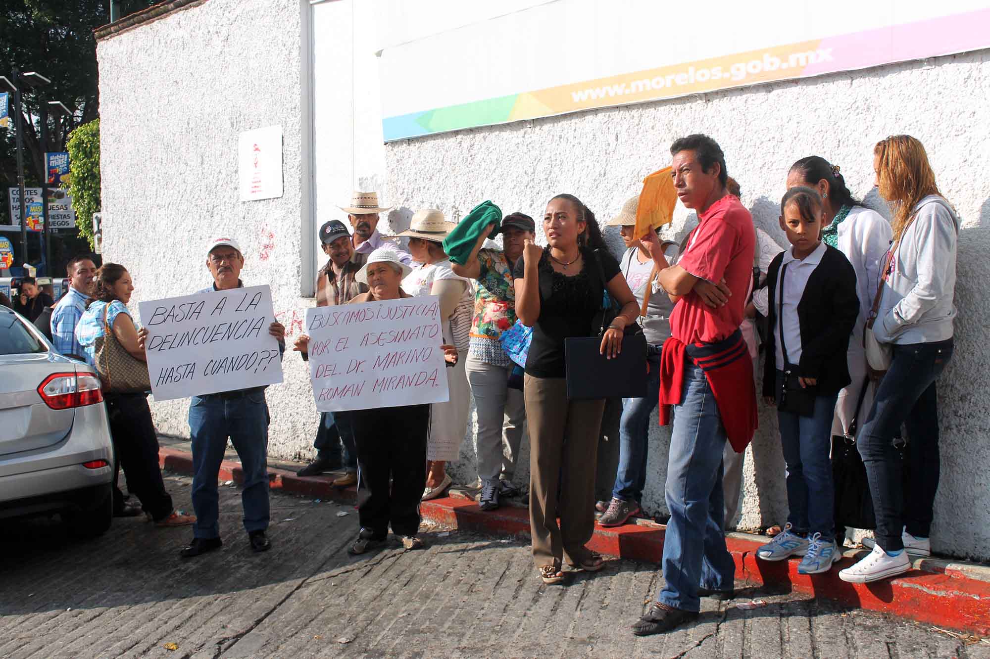 Una decena de personas entre familiares e integrantes del movimiento yo soy número 17, con pancartas de “buscamos justicia por el asesinato del doctor Marino Román”, señalaron que su protesta se debió para exigir justicia y no den carpetazo a la investigación en torno al asesinato del doctor que fue encontrado sin vida en su consultorio en el municipio de Temixco.