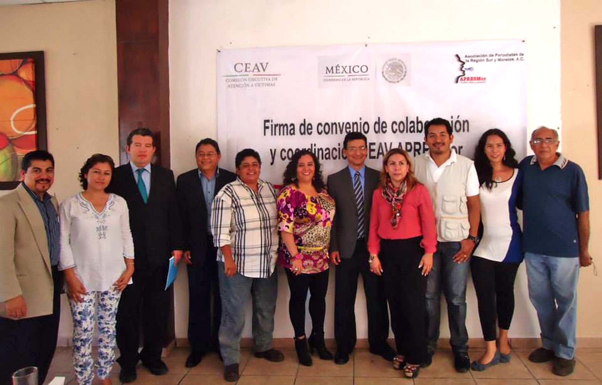 Jojutla, Morelos; 2 de septiembre de 2014. La Asociación de Periodistas de la Región Sur y de Morelos (APRESMOR), signó convenio de colaboración con la Comisión Ejecutiva de Atención a Víctimas (CEAV) federal, en busca del fortalecimiento entre ambas instituciones para la defensa y el acompañamiento de los derechos de las víctimas de delitos del fuero federal.