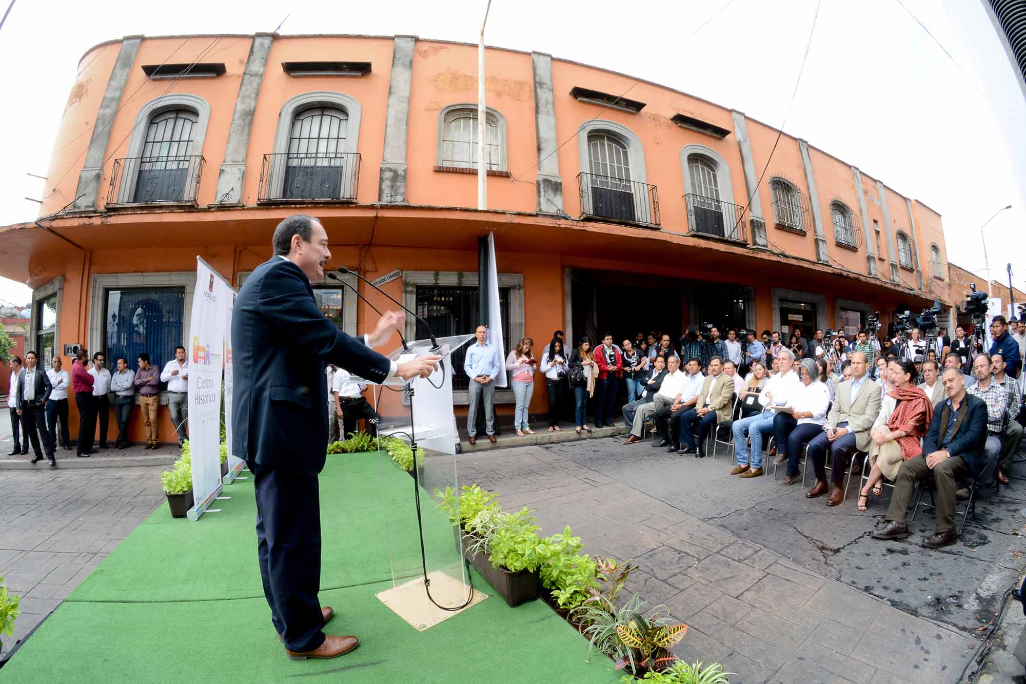 Cuernavaca, Morelos; 4 de agosto de 2014. El secretario de Gobierno, Jorge Messeguer Guillén dio hoy el banderazo de inicio a la obra de remodelación de la calle Ricardo Linares, acción que forma parte del proceso de la recuperación de la imagen del Centro Histórico de Cuernavaca.