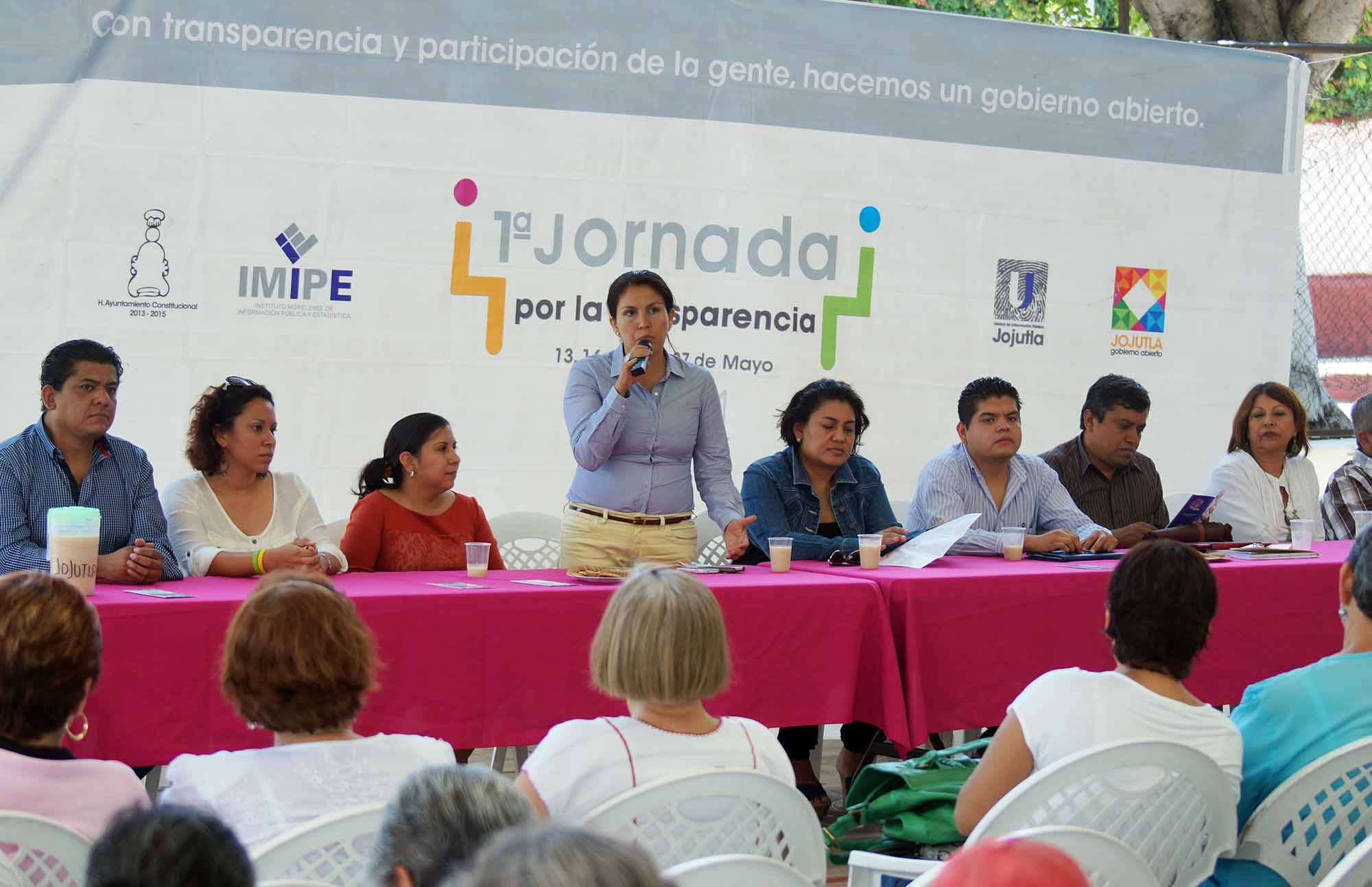 Jojutla, Morelos; 27 de mayo de 2014. En el marco de las actividades de la 1er Jornada por la Transparencia, llevada a cabo en el municipio de Jojutla, la presidenta municipal, Hortencia Figueroa Peralta, manifestó que se debe perder el miedo a preguntar y por el contrario comprender la dimensión del significado de este derecho. Lo anterior en la plática impartida a grupos vulnerables que se dieron cita en la Alameda, para escuchar de voz de las consejeras del Instituto Morelense de Información Pública y Estadística (IMIPE), Mireya Arteaga y Esmirna Salinas una detallada explicación sobre las formas de cómo se puede tener acceso a la información de orden público.