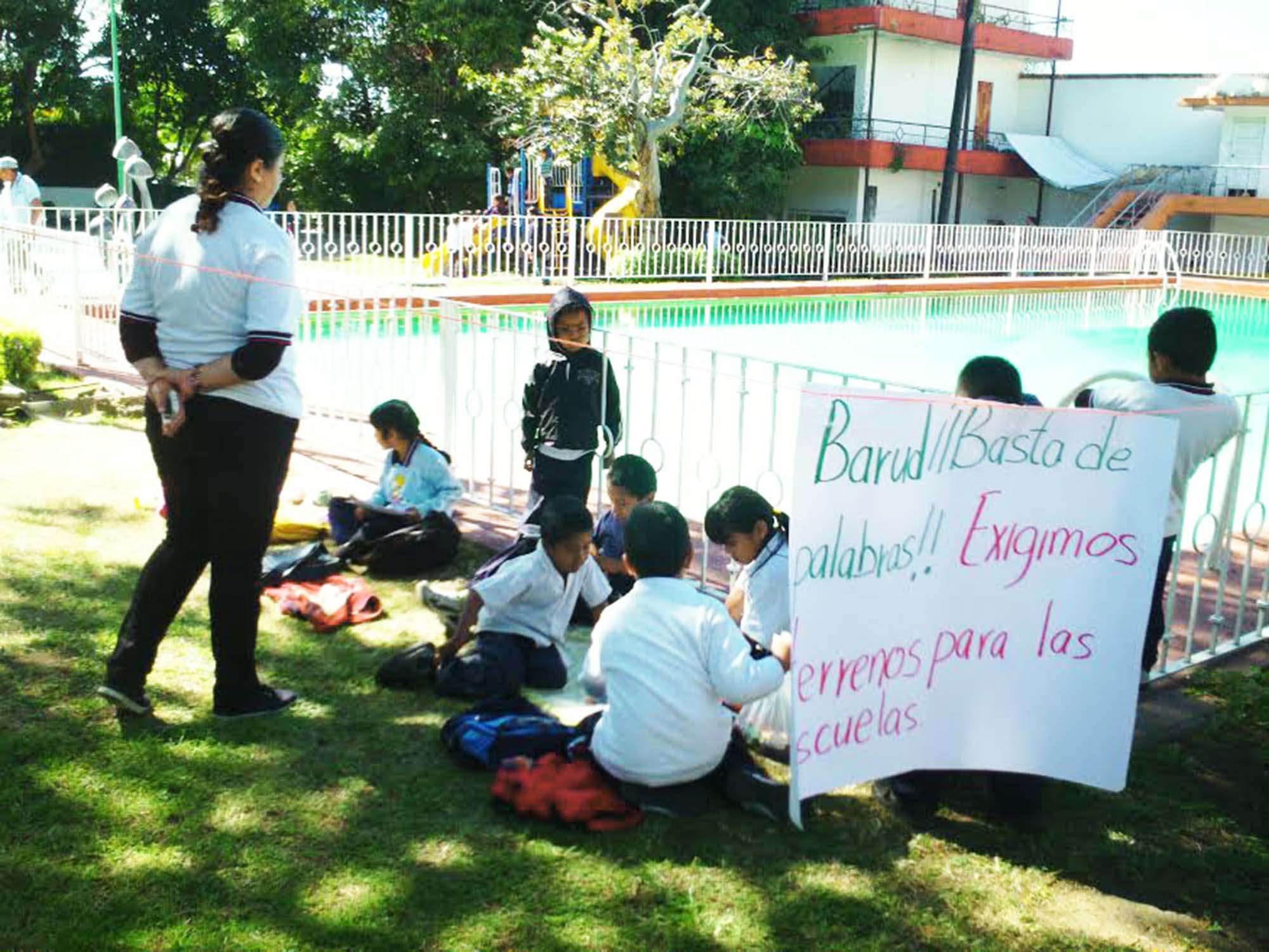 Cuernavaca, Morelos; 28 de noviembre de 2014. Por quinto día consecutivo estudiantes de preescolar y primaría de la colonia Lázaro Cárdenas del Río tomaron clases en las inmediaciones del Ayuntamiento de Cuernavaca como medida de presión para la demandar a la comuna capitalina la adquicisión de dos predios para la edificación de escuela dignas del nivel básico para esta población.
