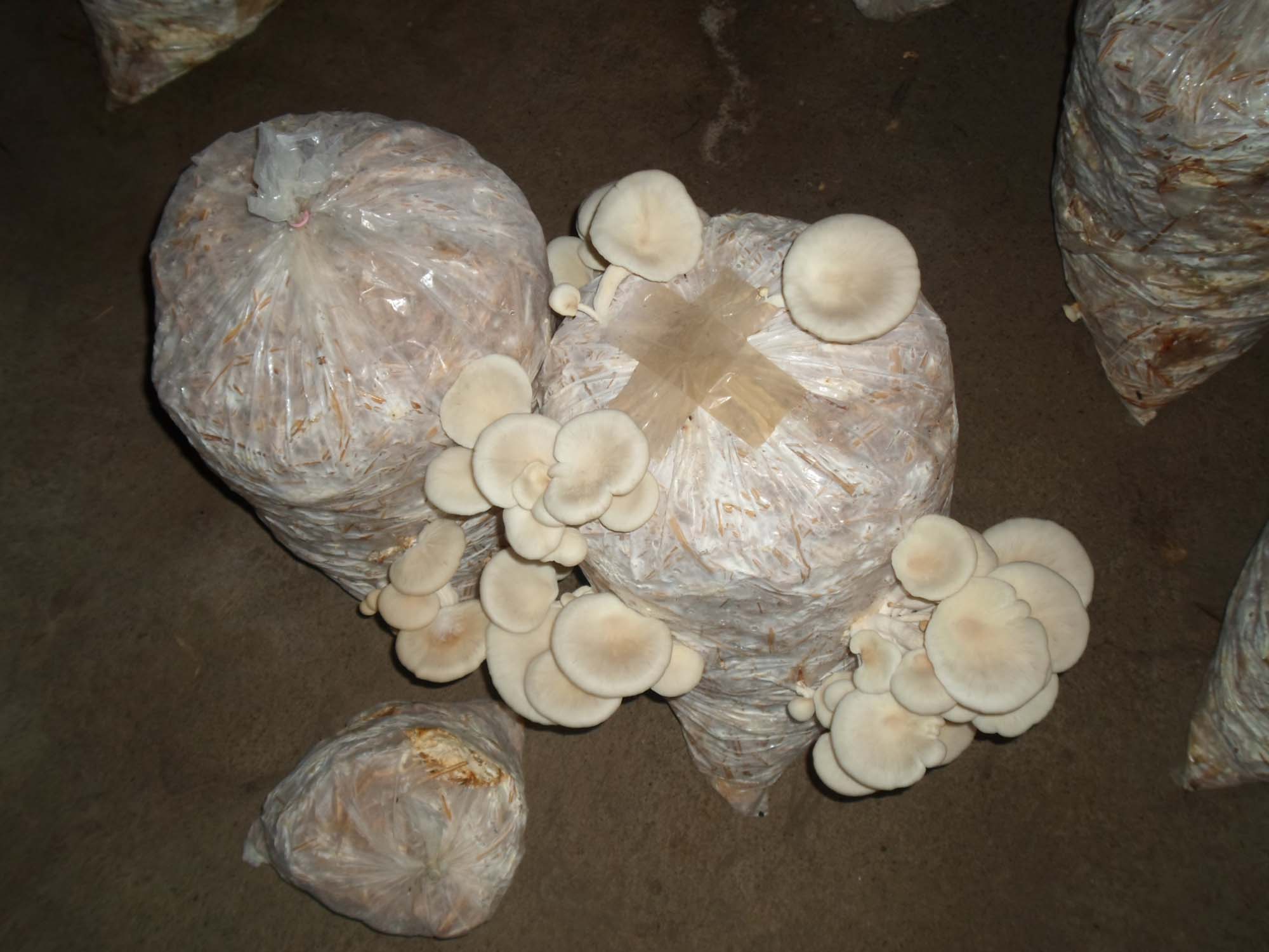 El material vegetativo o micelio lo obtiene de semilla de trigo que, una vez realizado todo un proceso, se convierte en semilla que se introduce en bolsas de plástico previamente llenadas con paja de trigo que ha sido pasteurizado; se colocan en cuartos húmedos en donde después de cuatro semanas se puede estar cosechando el hongo seta.
