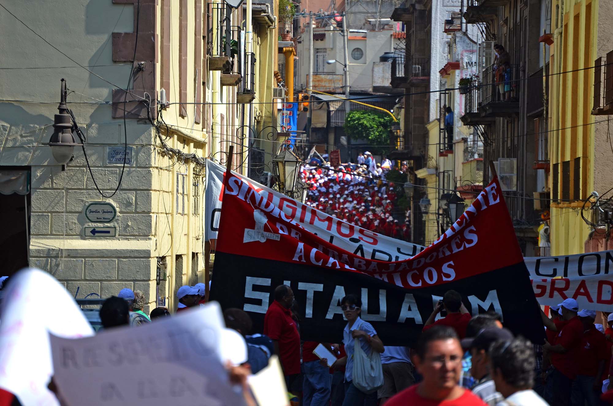 Cuernavaca, Morelos; 1 de mayo de 2014. Después de las nueve de la mañana encabezados por el Sindicato Mexicano de Electricistas (SME) partió de Avenida Plan de Ayala un contingente del Pacto por la Soberanía Alimentaria y Energética se movilizó por calles de Cuernavaca para conmemorar en día Internacional del Trabajo.