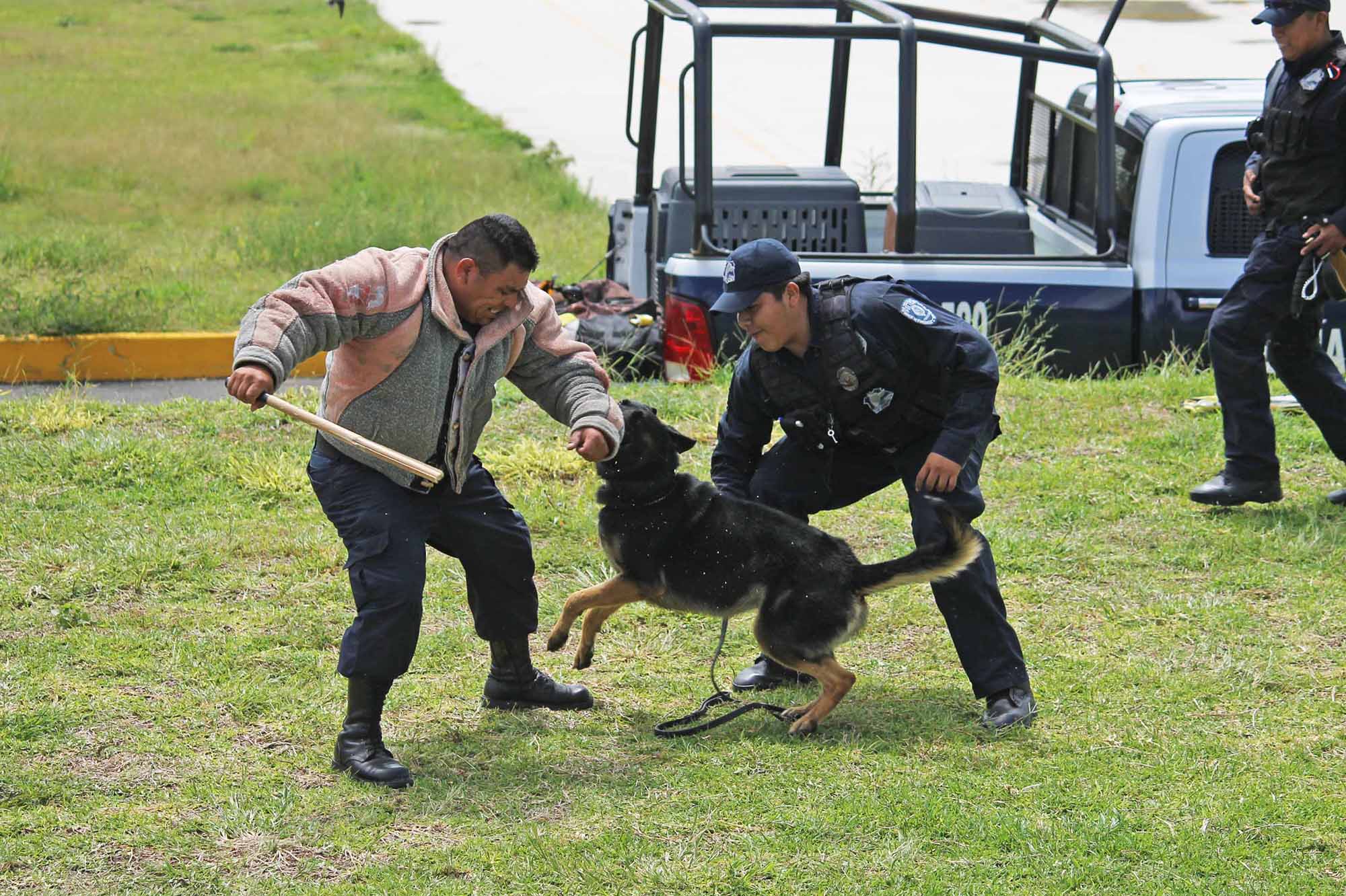 Los perros habían hecho su primera aparición pública durante el desfile del 16 de septiembre, sobre la calle Galeana y frente al presídium, se realizó una maniobra en la cual un hombre que manejaba un vehículo fue acorralado por tres patrullas. El delincuente accionó una pistola –de salva– y un agente perruno lo atacó y lo desarmó mientras los policías se protegían desde sus patrullas y ordenaban al criminal que se rindiera. Otro de los agentes policiacos caninos detectó la droga en la cajuela del coche compacto. El gobernador y su gabinete miraron todo desde arriba. En aquella ocasión, hubo aplausos y vivas para los oficiales, sobre todo, para los ladrantes.
