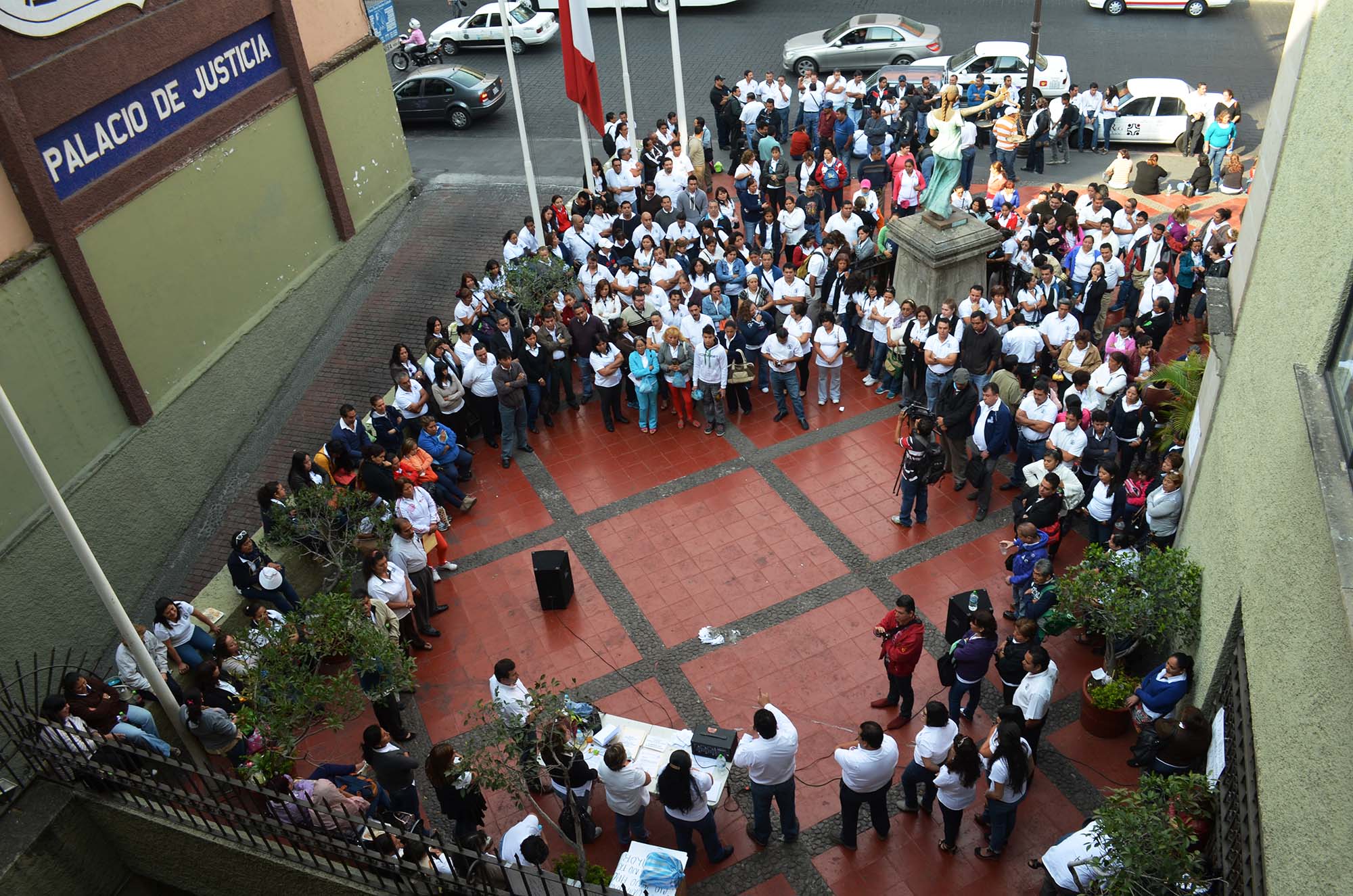 A las 2 de la tarde los trabajadores realizaron un mitin frente a las oficinas del Congreso del Estado en donde expresaron su repudio por el Consejero de la judicatura, Julio Ernesto Pérez Soria, a quien acusan de ser él quien hace y deshace en el Tribunal Superior ya que Nadia Luz Lara, la presidenta y sólo una empleada de éste.