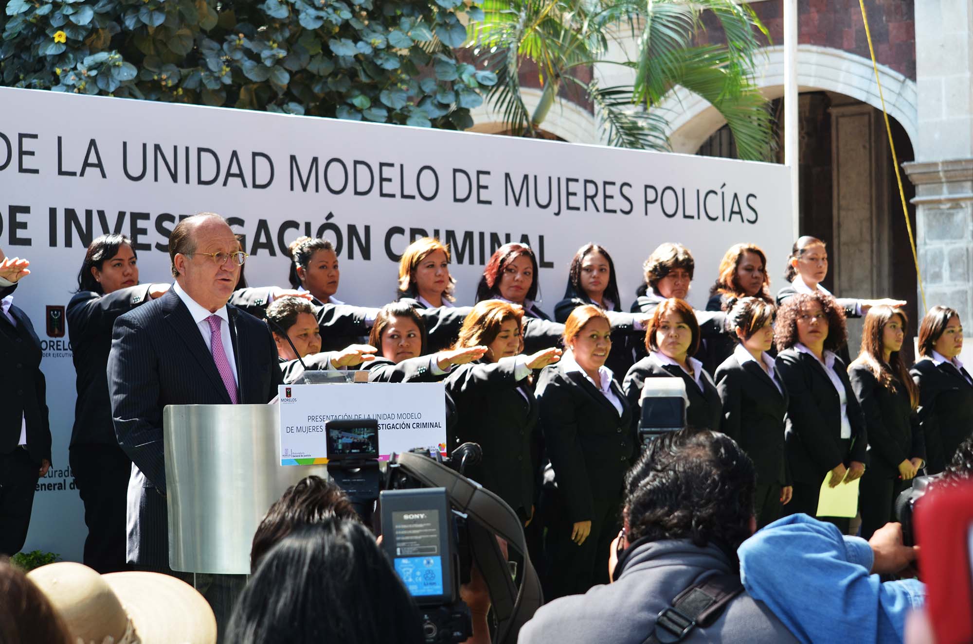 Cuernavaca, Morelos; 24 de enero de 2014. El gobernador Graco Ramírez presentó hoy y tomó protesta a la Unidad Modelo de Policía de Investigación Criminal, conformada por un grupo de mujeres capacitadas para investigar la comisión de los delitos y esclarecerlos con base a pruebas científicas.