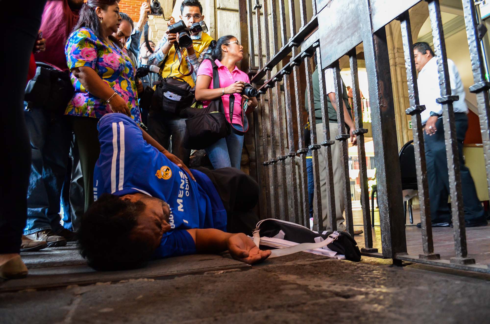 El 25 de enero después de la presentación de las 26 mujeres que integran la Unidad Modelo de Mujeres Policías de Investigación Criminal, la cual se llevó a cabo en plaza de armas de Cuernavaca, Baltasar Guadarrama trató de abordar al gobernador y, según relata el propio Baltasar, fue golpeado en las costillas, del lado izquierdo, por un escolta, lo cual hizo que se derribara frente al palacio de gobierno.