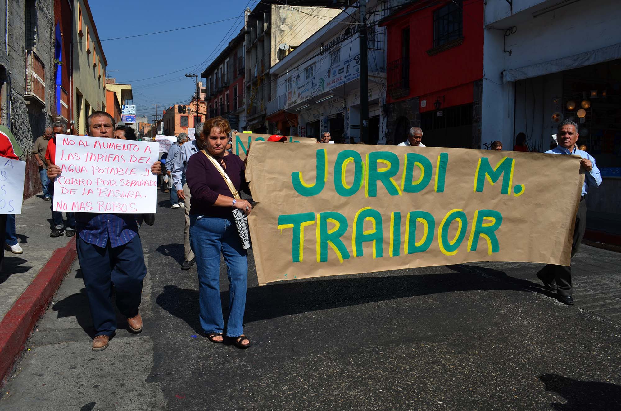 Cuernavaca, Morelos; 23 de enero de 2014. Congestionamiento vial fue el que se generó por varias horas en las calles Matamoros y Galeana en la capital, luego de que un grupo de 300 habitantes, en su mayoría de la tercera edad, realizarán una marcha que partió del chapitel del Calvario hacía la comuna capitalina en demanda del Gobierno Municipal no cobre a los impuestos de forma bimestral por el servicio de recolección de basura