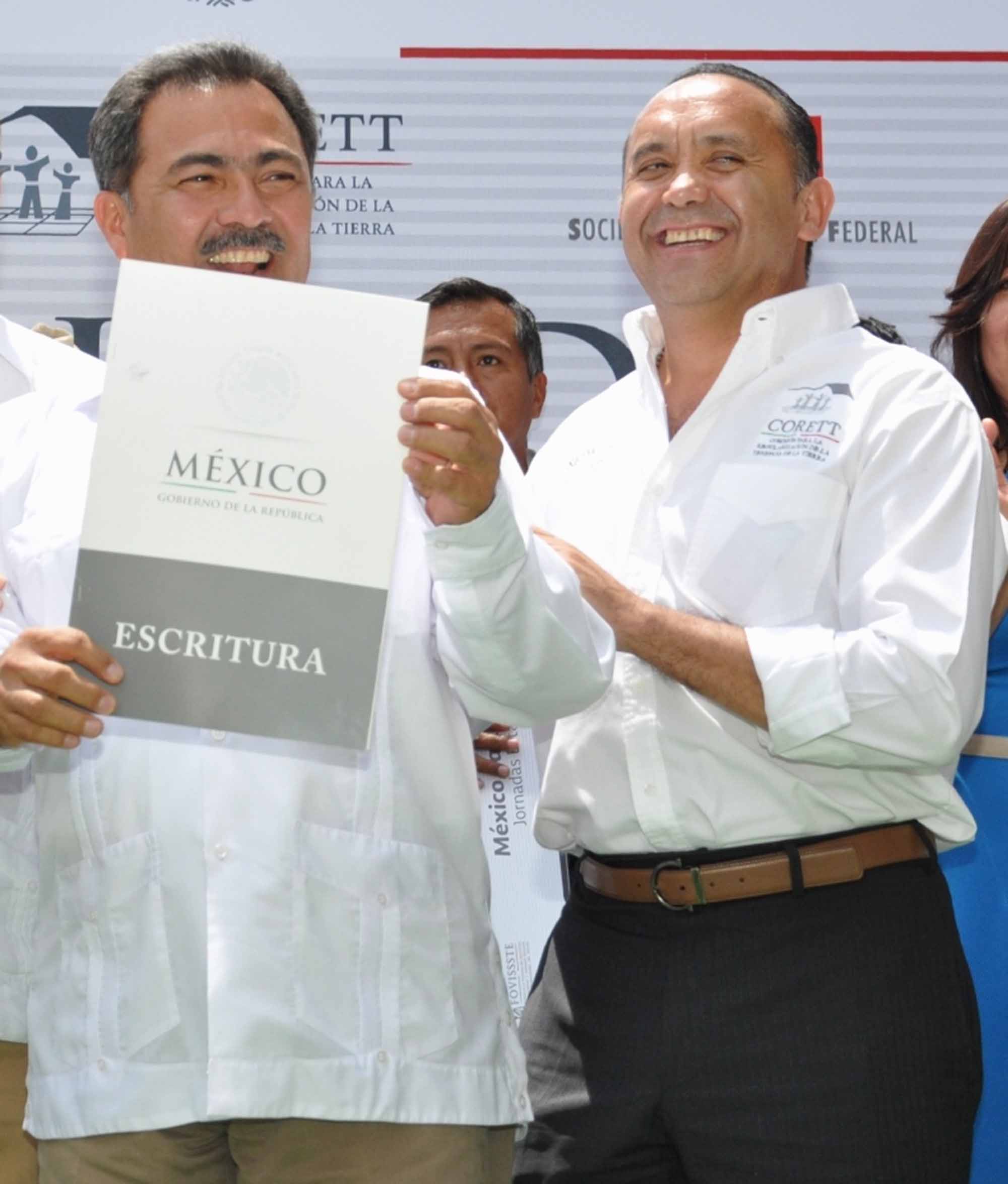 El alcalde Jorge Morales Barud, recibió por parte del director general de la Comisión para la Regularización de la Tenencia de la Tierra (CORETT), Jesús Alcántara Núñez, la escritura que acredita la legítima posesión de la propiedad; con ello, Morales Barud aseveró que el gobierno capital seguirá trabajando para acreditar un mayor número de predios, tales como algunos parques públicos, a fin de acceder a recursos federales en beneficio de los ciudadanos.