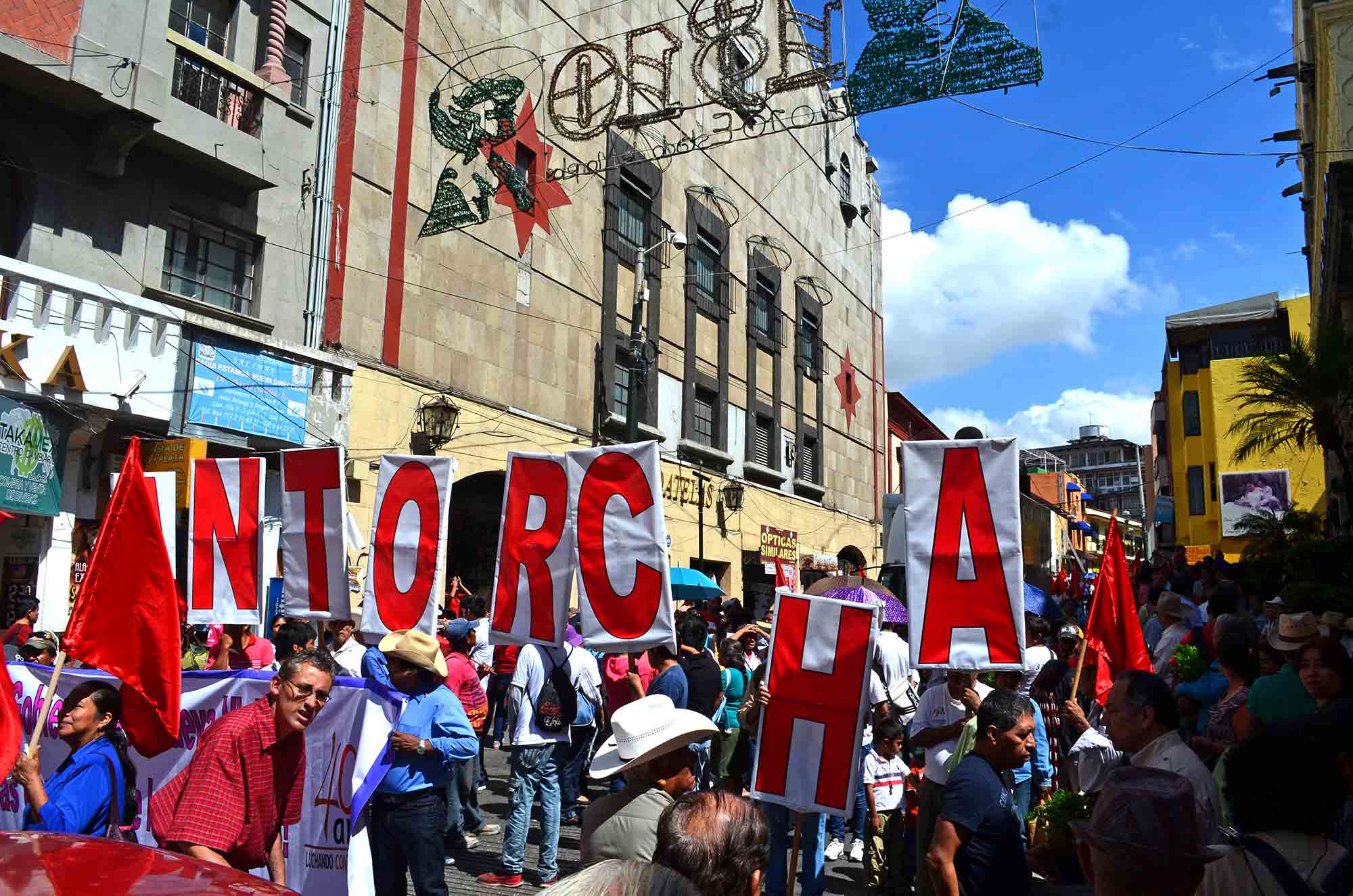 Cuernavaca, Morelos; 9 de junio de 2014. En dos contingentes que salieron del norte y centro de Cuernavaca este día integrantes del Movimiento Antorcha Social y Campesina ocuparon varias calles de la ciudad capital por lo que la vialidad se vio severamente afectada por algunos minutos.
