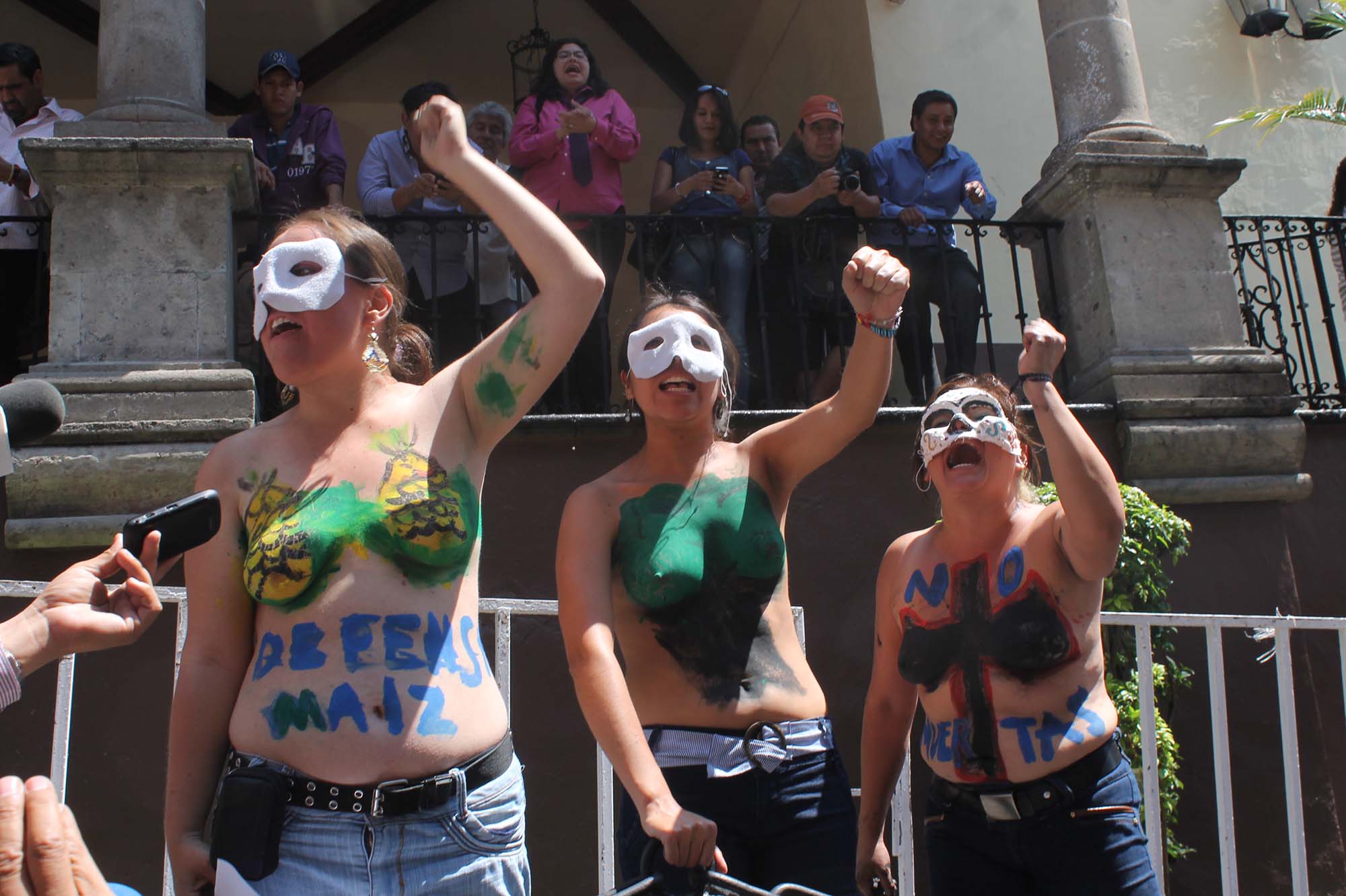 Con gritos de fuera Graco y Peña Nieto, tres mujeres con el torso desnudo y pintado, acusaron al Gobierno del Estado de dar siempre un discurso traidor y no a favor de las mujeres.