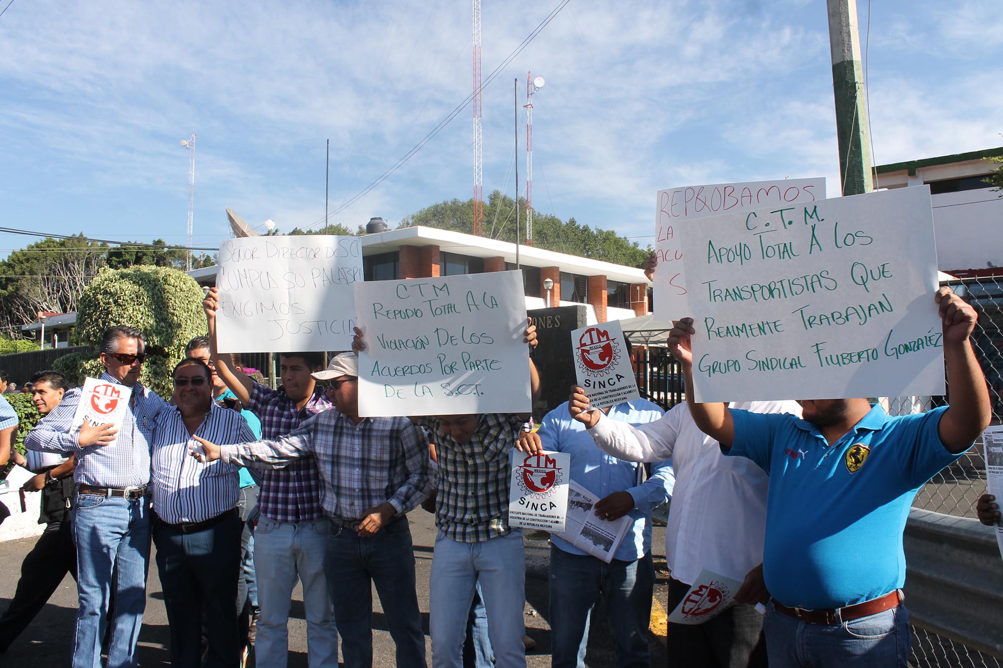 Cuernavaca, Morelos; 7 de abril de 2014. Transportistas de la Confederación de Trabajadores de México (CTM) protestaron afuera de la Secretaría de Comunicaciones y Transportes (SCT) para exigir se cumplan los acuerdos y les den trabajo a lugareños de Huitzilac.