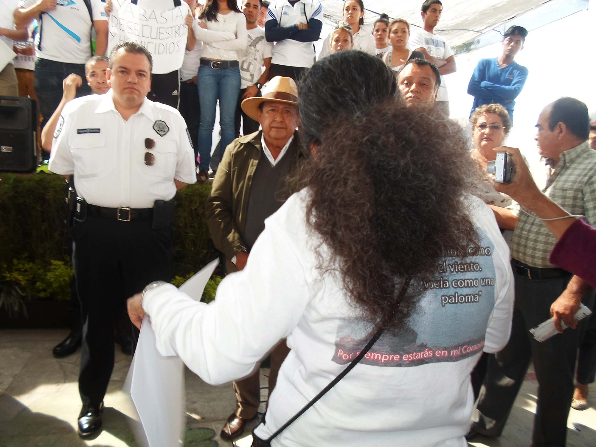 “Eres libre como el viento, vuela como una paloma, Arq. César Vidal González”, se lee en la espalda de las playeras de hombres y mujeres de todas las edades, incluidos niños. Es la alusión a la persona, de quien se sabe, que fue secuestrada y, aunque fue pagado su rescate, no le perdonaron la vida.