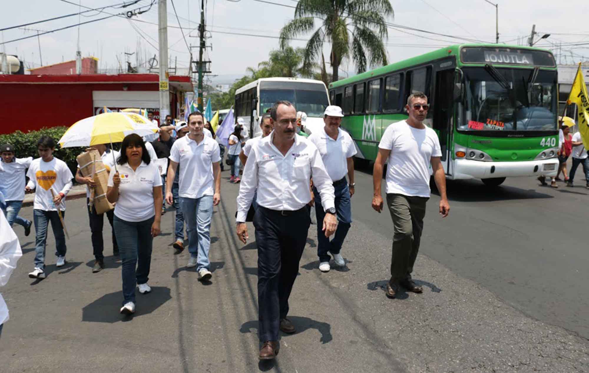 Cuernavaca, Morelos; 3 de mayo de 2015. Acompañado de más de un centenar de simpatizantes, Jorge Messeguer, candidato a la presidencia municipal de Cuernavaca, recorrió hoy la avenida Plan de Ayala desde El Vergel hasta el Instituto Mexicano del Seguro Social (IMSS) para dar a conocer su proyecto de recuperación de Cuernavaca.