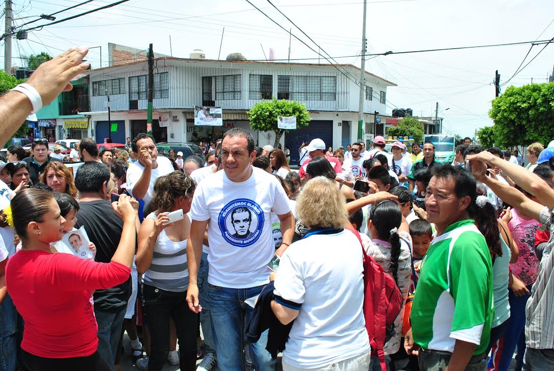 Más tardes, Cuauhtémoc Blanco recorrió la calle Rubén Darío de la colonia Carolina, iniciando en medio de una convivencia con trabajadores de la construcción, niños y padres de familias, que le brindaron una cálida recepción. Durante su recorrido, presentó sus propuestas y mantenía un diálogo directo con los vecinos. “Eres el bueno, tu eres realmente quien le puede ganar a los políticos, ya estamos cansados de las familias del PRI, de que en el PRD cuando llegan al poder le dan trabajo a la esposa, a los hijos y a toda la familia y al pueblo lo olvidan. Estamos contigo “Cuauh”, sabemos que no nos vas a fallar”, le dijo don Luis Martínez, vecino de la colonia.
