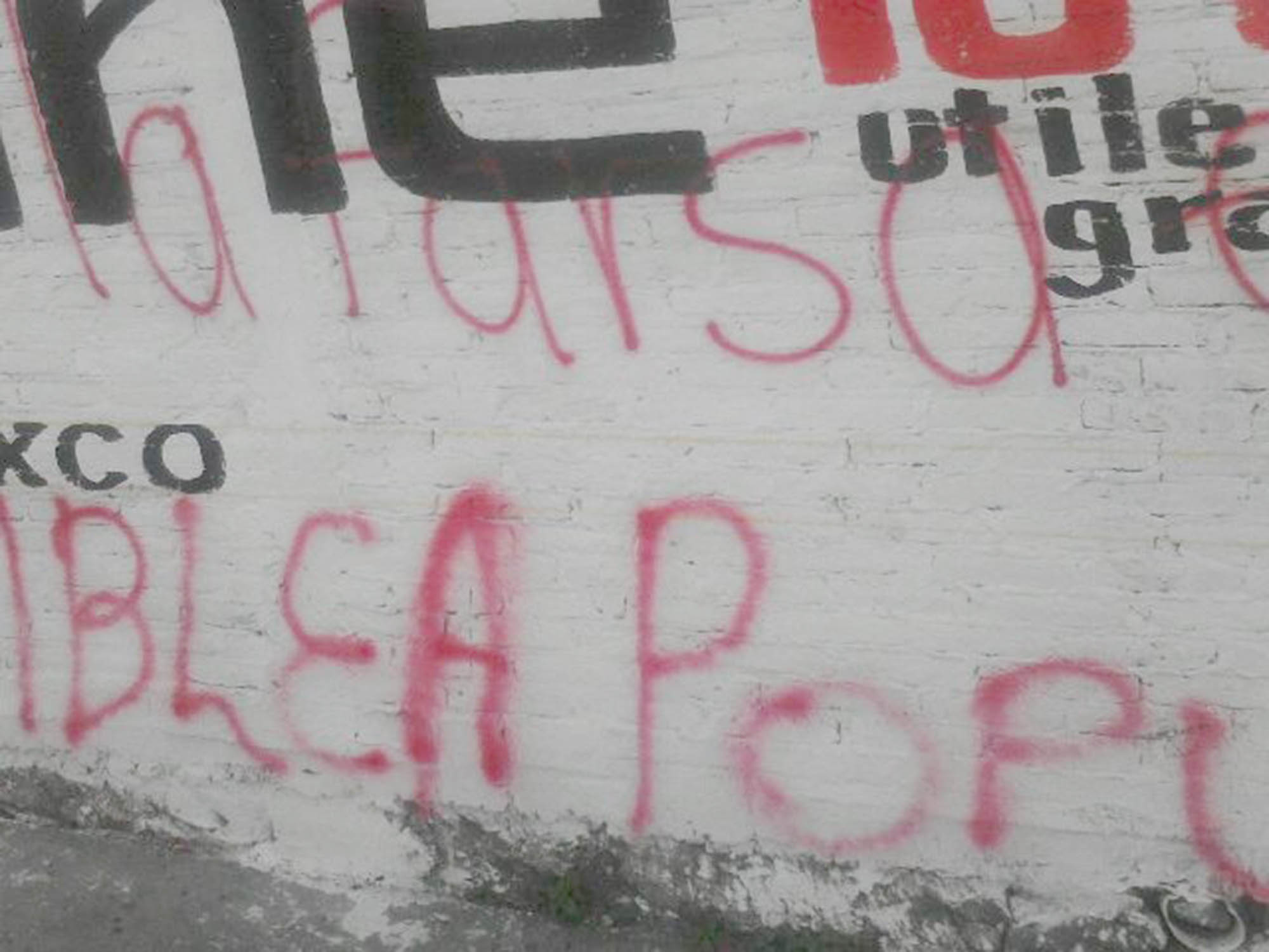 En las bardas distribuidas en todo el municipio fueron rayadas con pintura de color roja de latas de pintura y sobre la propaganda de todos los partidos políticos versa la leyenda “NO A LA FARSA ELECTORAL ASAMBLE POPULAR”