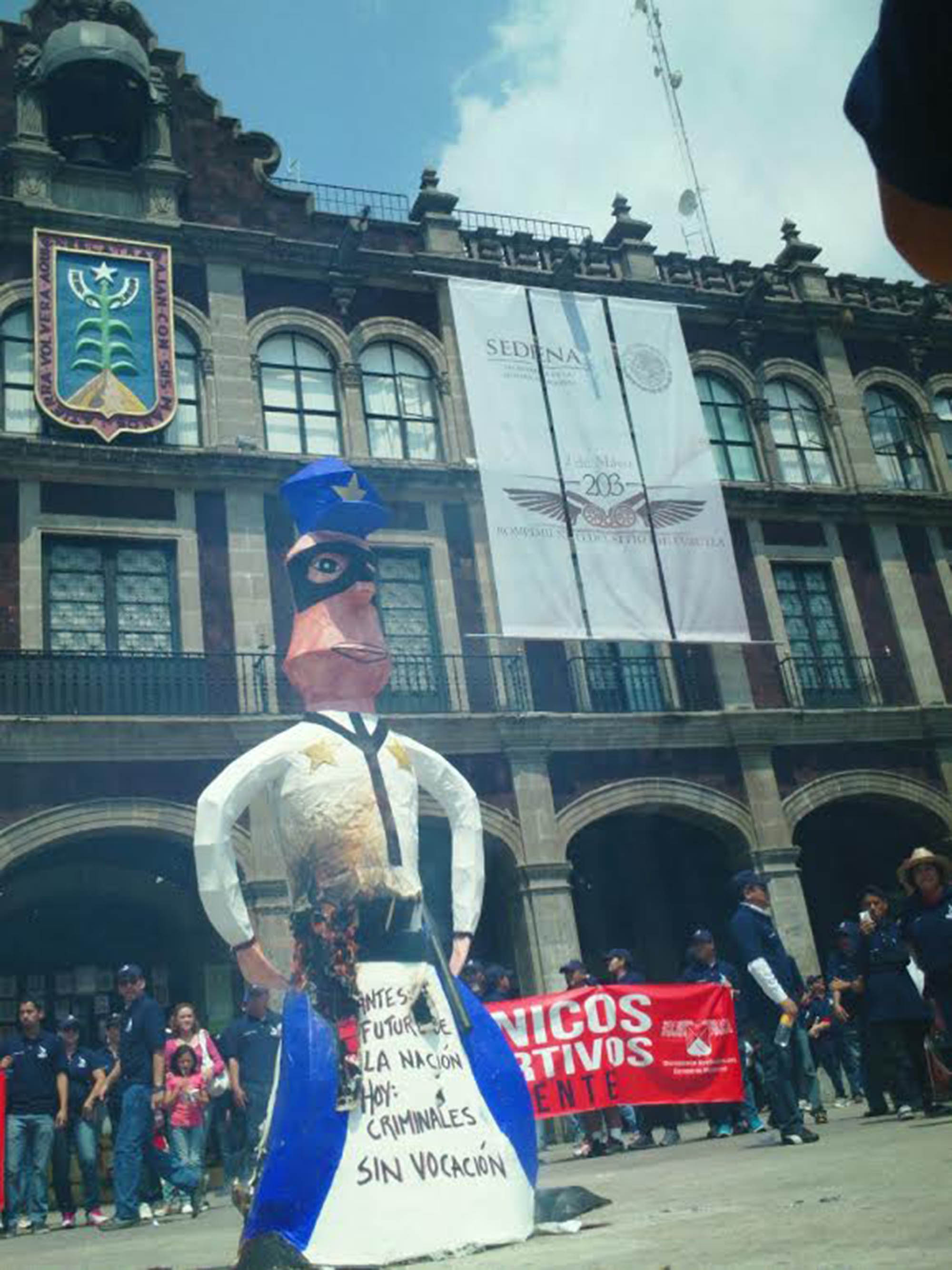 El personal del SITUAEM quemó en la explana del zócalo una mojiganga.