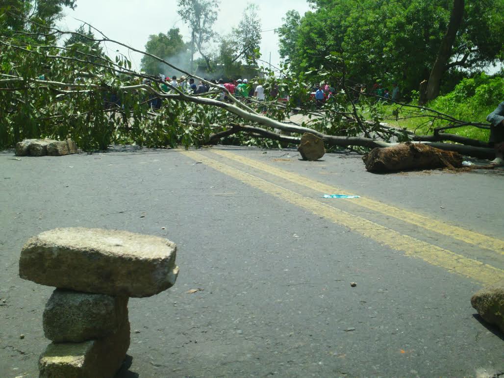 Con ramas de árboles, rocas de varios tamaños, tabicones y pedazos de tronco que fueron incendiados los productores responsabilizaron al munícipe Juan Carlos Flores Espinoza, de ser el responsable director de esta situación pues lo acusaron de no haberles entregado mil 500 bultos de fertilizante para sus cultivos.