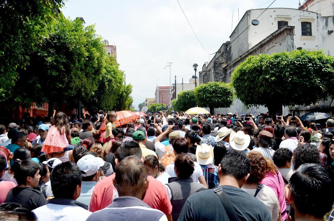 Una vez concluida la misa policías viales escoltaron la carrosa que salió por avenida Morelos, entró por Rayón y después por Galeana para dar una vuelta al zócalo de la ciudad. Siempre seguida por cientos de curiosos que no pudieron entrar a la misa.