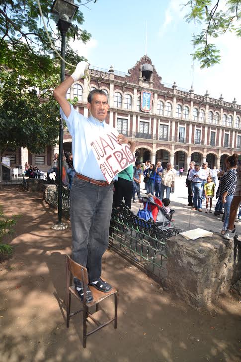 Con una soga en el cuello, Rosendo Robles expresó que este acto es un reflejo de la realidad, pues las autoridades tienen a “Juan Pueblo¨ ahorcado con tanta corrupción y leyes que atentan contra la ciudadanía.