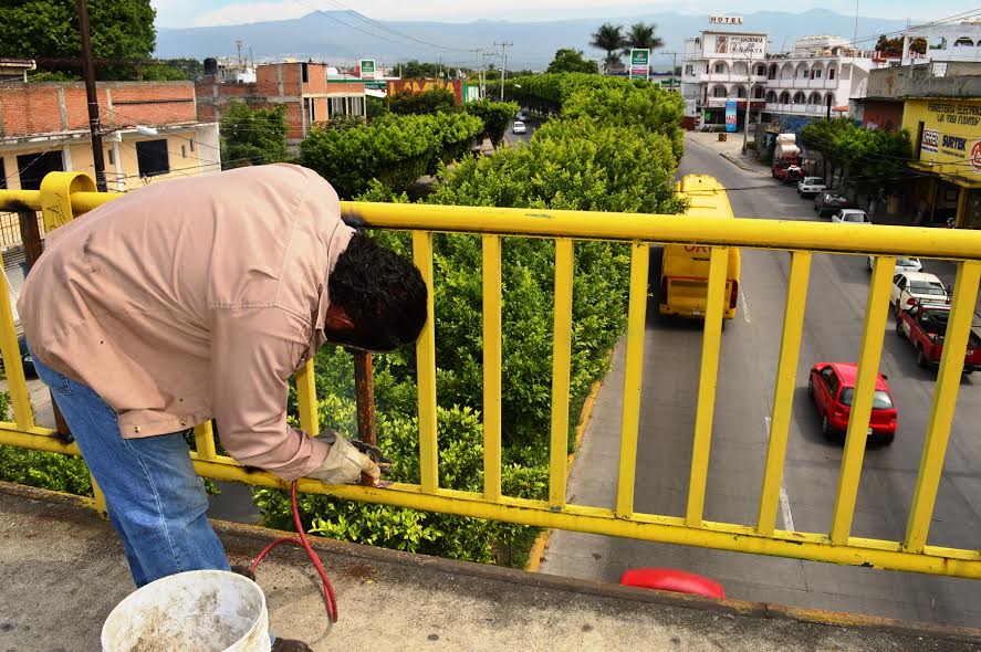 Jiutepec, Morelos; 17 de agosto de 2015. A fin de atender las demandas de la ciudadanía y salvaguardar la integridad de los transeúntes que diariamente necesitan utilizar los puentes peatonales, el Gobierno Municipal comenzó la rehabilitación y construcción de los principales puentes principales del municipio, ubicados en el Boulevard Cuauhnahuac.