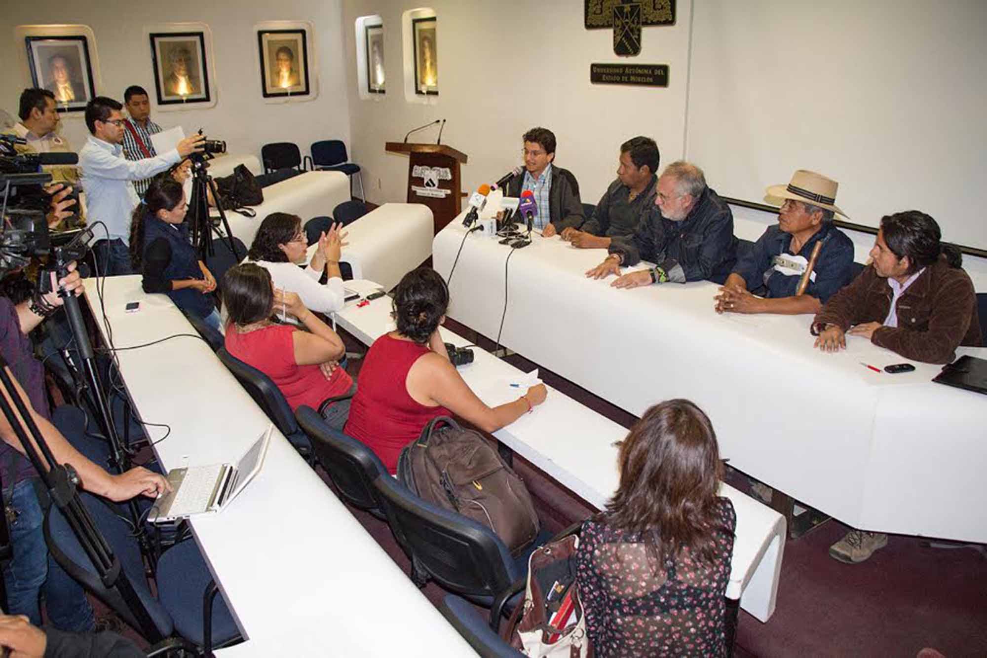 Cuernavaca, Morelos; 10 de enero de 2015. Esta mañana en conferencia de prensa realizada en la Sala de Rectores de la Universidad Autónoma del Estado de Morelos (UAEM), integrantes del Frente en Defensa de Tepoztlán que participan en las asambleas regionales rumbo al Congreso de los Pueblos de Morelos, denunciaron amenazas y hostigamiento luego de haber recibido un citatorio de comparecencia ante la Procuraduría General de la República sin especificar acusación.